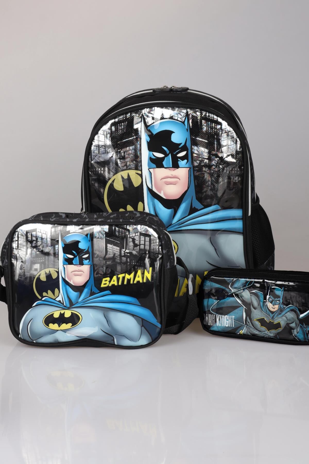 DEKOMUS BATMAN hayranlarının yanında! Bu seti seveceğinize eminiz :) .1 adet anaokul çantası , 1 adet kalem çantası,1 adet beslenme çantası gönderilecektir. BATMAN olarak sattığımız tüm ürünler orjinal ve lisanslıdır.Sağlığa zararlı kimyasal madde kullanılmamıştır