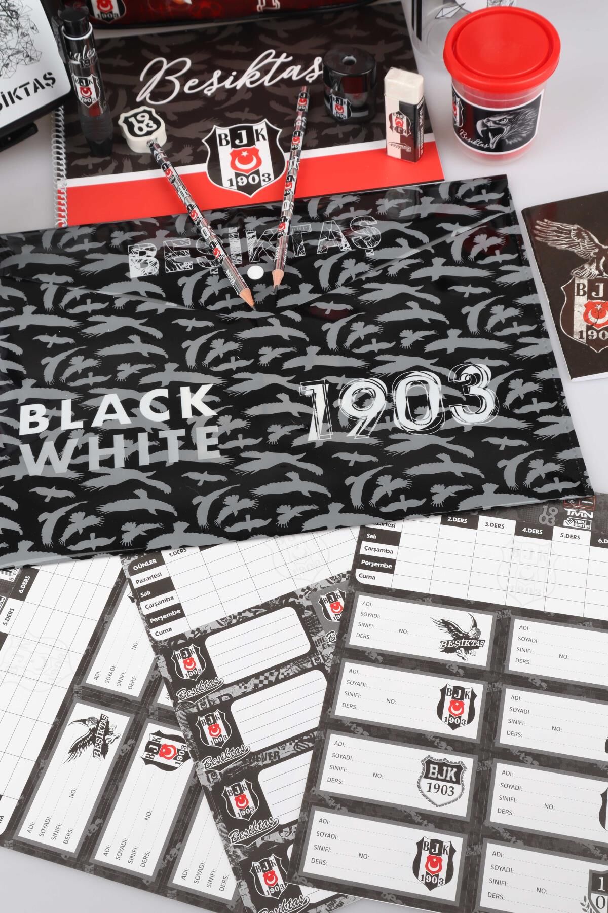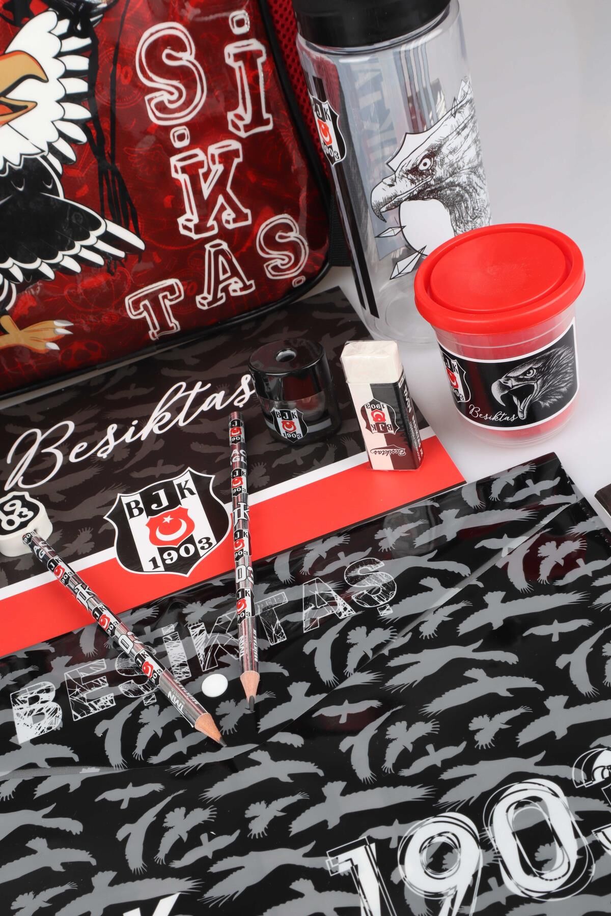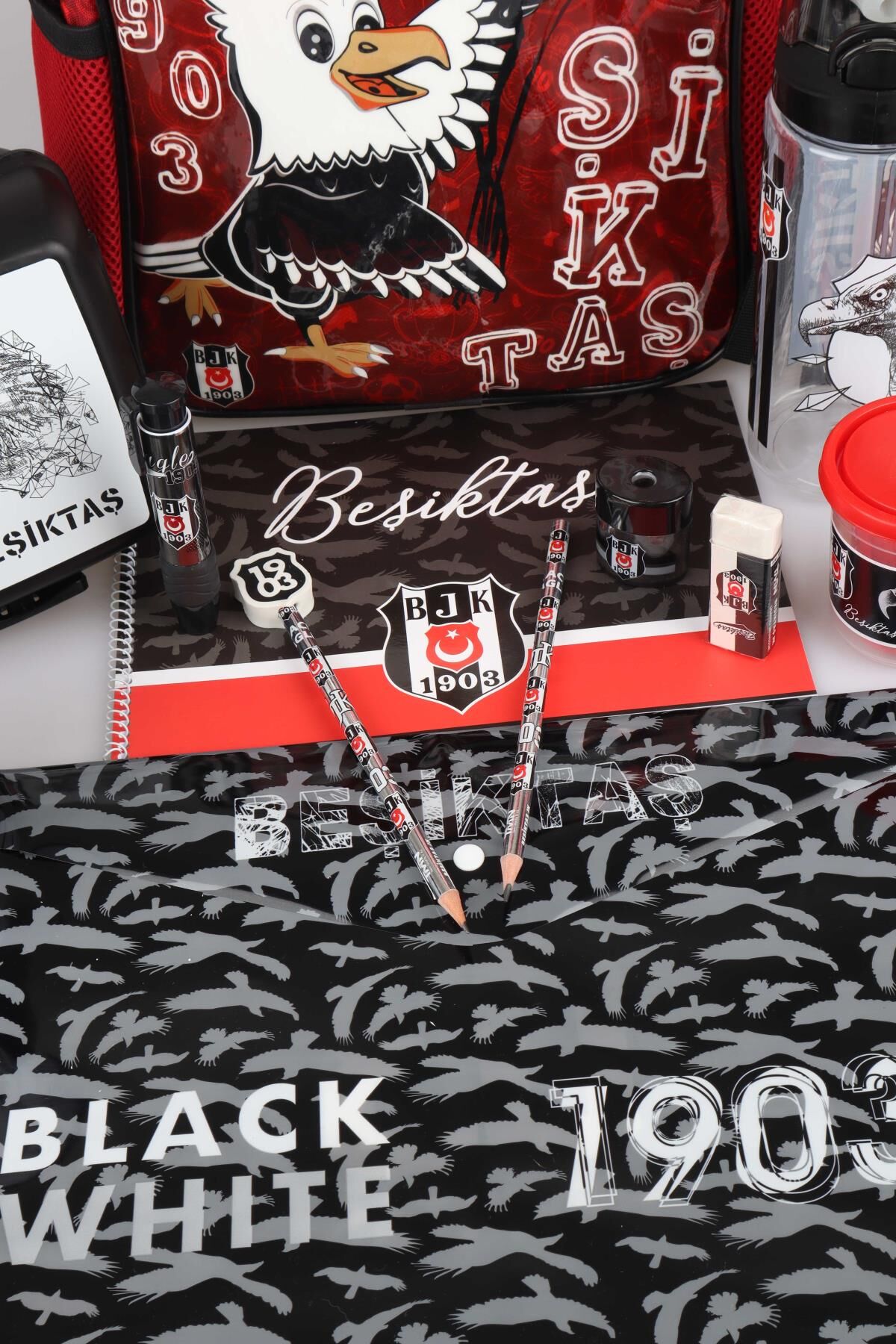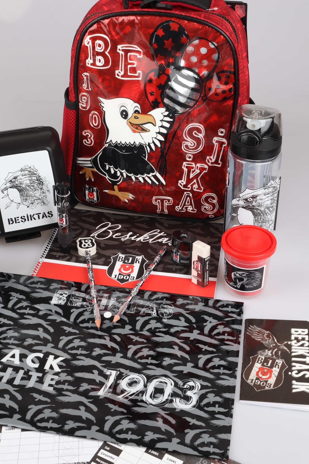 LİSANSLI BEŞİKTAŞ TEK BÖLMELİ KÜÇÜK BOY 32 CM ANAOKUL ÇANTASI,BESLENME KABI,500 ML MATARA İLE FULL KIRTASİYE SETİ