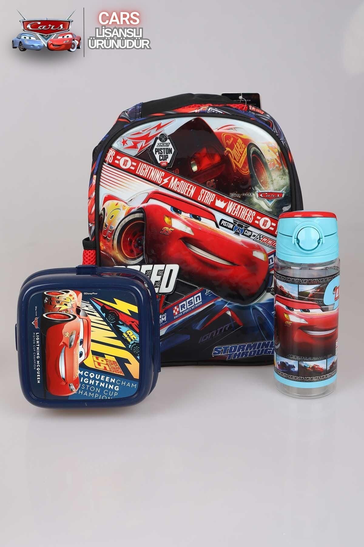 DEKOMUS CARS seven miniklerimizin yanında! CARS seven çocuklar için özenle hazırladığımız bu kırtasiye setini çok seveceksiniz! Set İçeriği:1 adet anaokulu çantası,1 adet beslenme kutusu ve 1 adet 500 ml trıtan matara gönderilecektir. ****CARS olarak sattığımız tüm ürünler orjinal ve lisanslıdır.Sağlığa zararlı kimyasal madde kullanılmamıştır.
