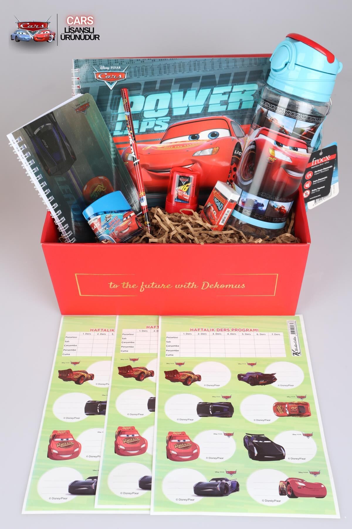 DEKOMUS CARS seven miniklerimizin yanında! CARS seven çocuklar için özenle hazırladığımız bu kırtasiye setini çok seveceksiniz! Set İçeriği:1 ADET KURŞUN KALEM, 1 ADET TRITAN MATARA 500 ML , 1 adet silgi,1 adet kalemtraş ,1 adet bloknot,1 Adet resim defteri, 1 adet 24'lü okul etiketi, 1 adet çift bıçaklı kalemtraş gönderilecektir. ****CARS olarak sattığımız tüm ürünler orjinal ve lisanslıdır.Sağlığa zararlı kimyasal madde kullanılmamıştır.