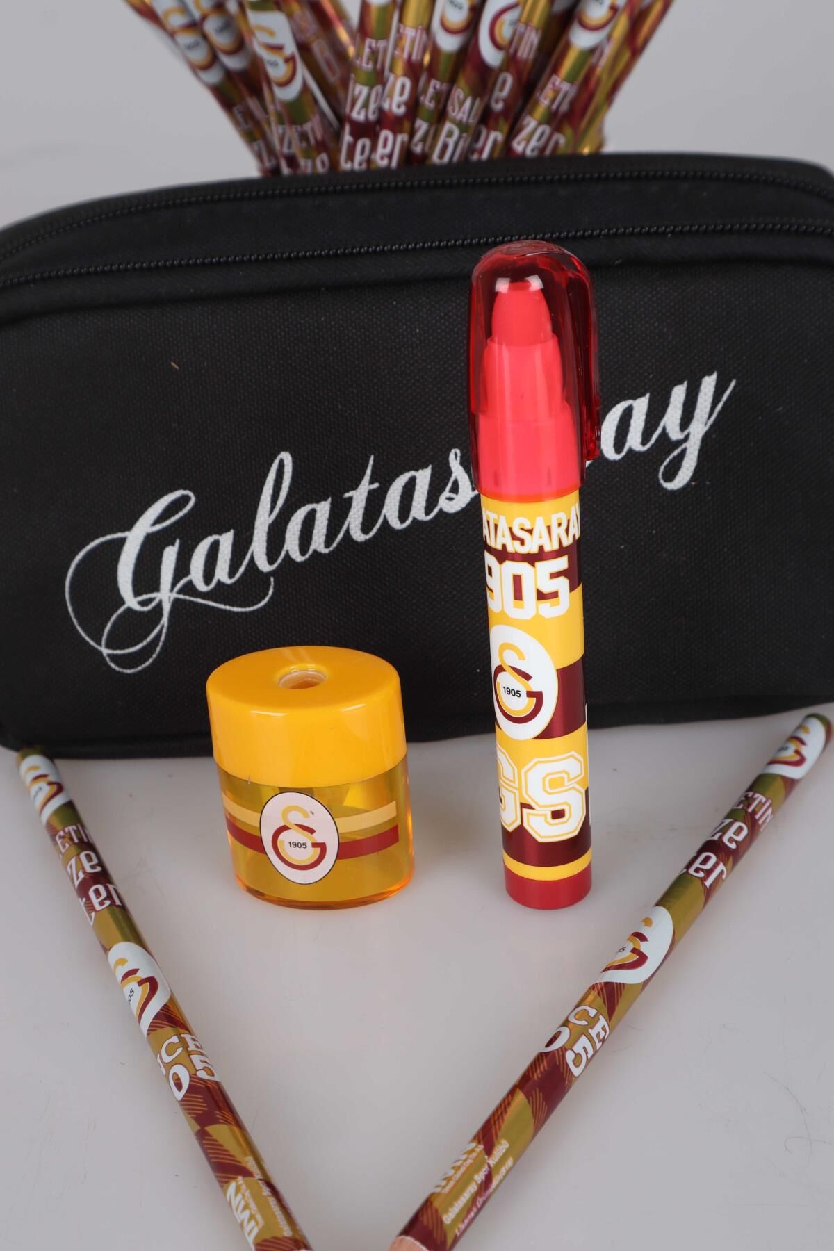 DEKOMUS Galatasaraylı taraftarlarımızın yanında! Galatasaraylı taraftarlarımız için özel olarak hazırlanan bu seti çok seveceksiniz.:)1 adet kalem çantası, 2 adet kurşun kalem, 1 adet kalemtraş ,1 adet roket silgi gönderilecektir. GALATASARAY STORE olarak sattığımız tüm ürünler orjinal ve lisanslıdır.Sağlığa zararlı kimyasal madde kullanılmamıştır.