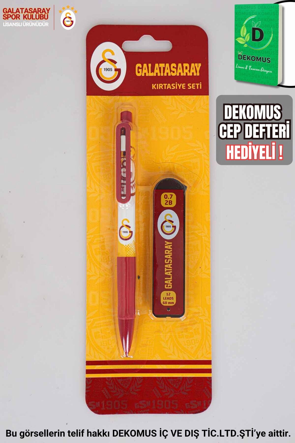 DEKOMUS Galatasaraylı taraftarlarımızın yanında! Galatasaraylı taraftarlarımız için özel olarak hazırlanan bu uçlu kalem ve yanındaki 0.7 mm uç ile not almayı çok seveceksiniz.:) 1 adet set olarak gönderilecektir. GALATASARAY STORE olarak sattığımız tüm ürünler orjinal ve lisanslıdır.Sağlığa zararlı kimyasal madde kullanılmamıştır.