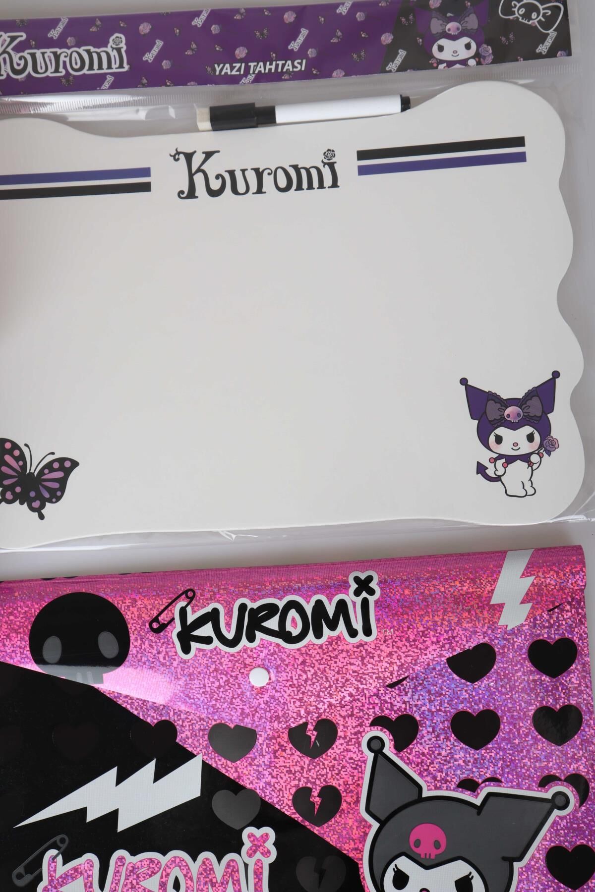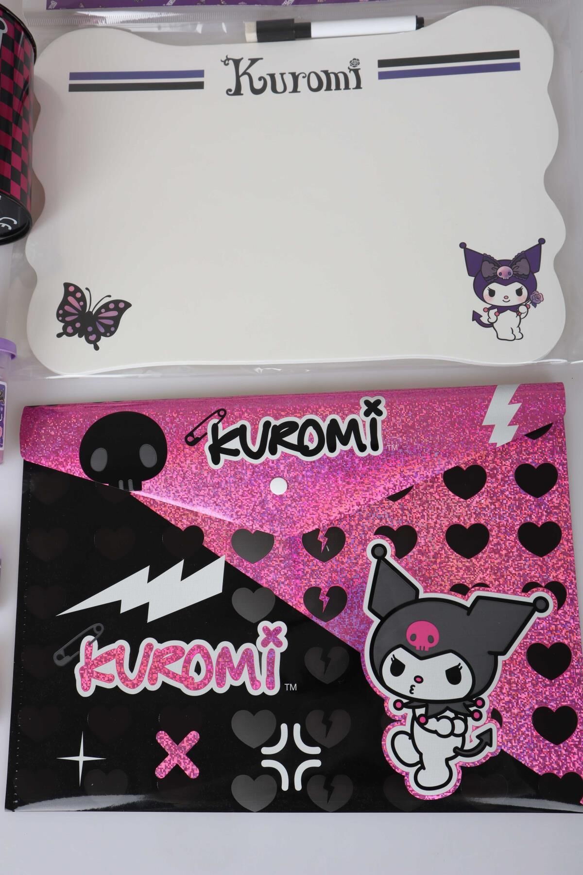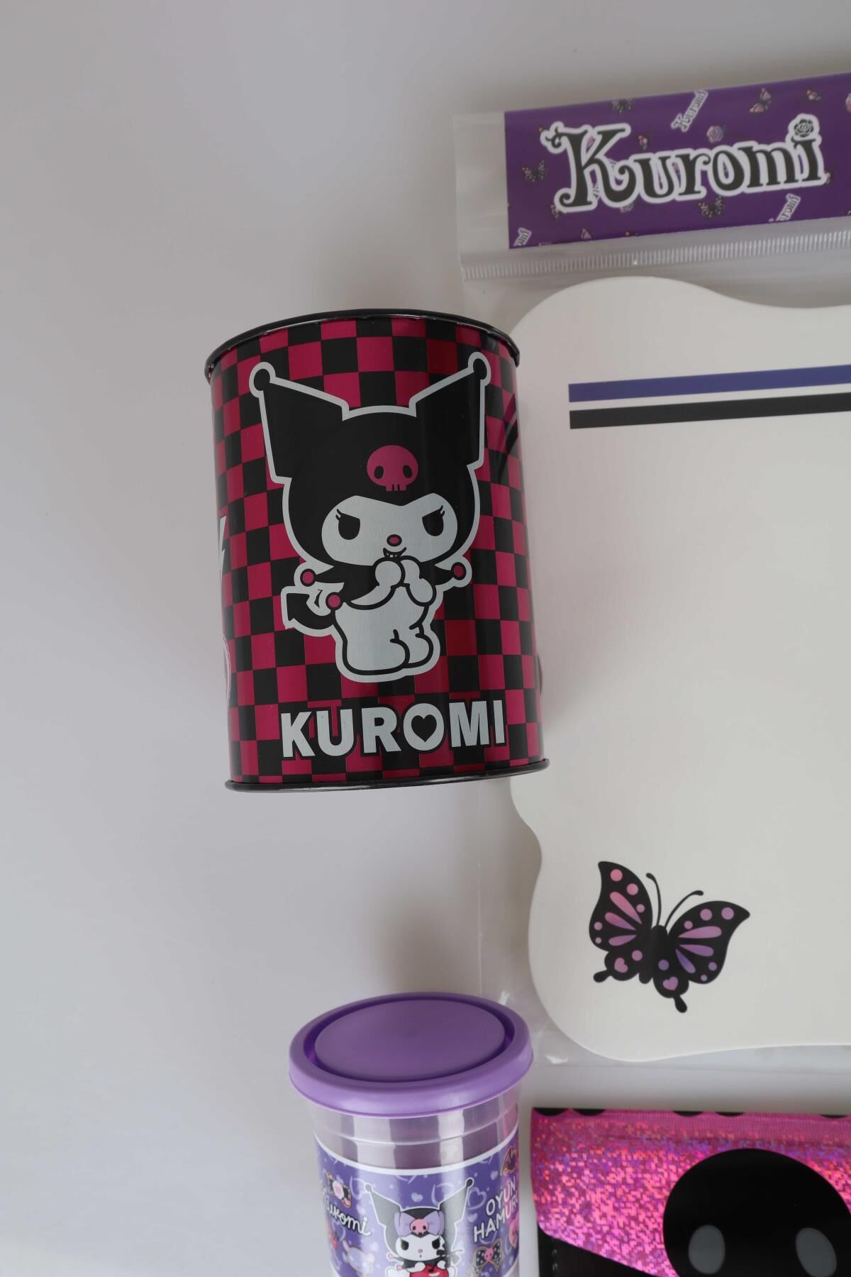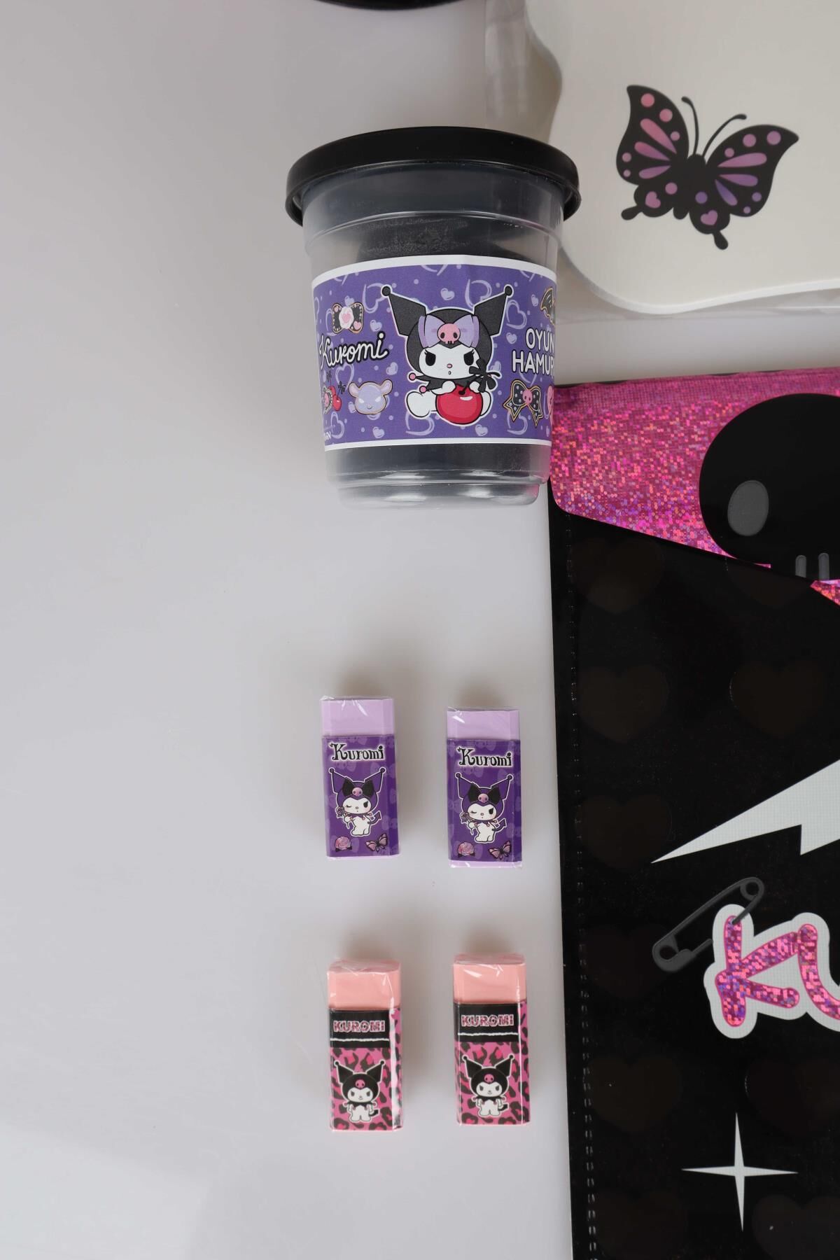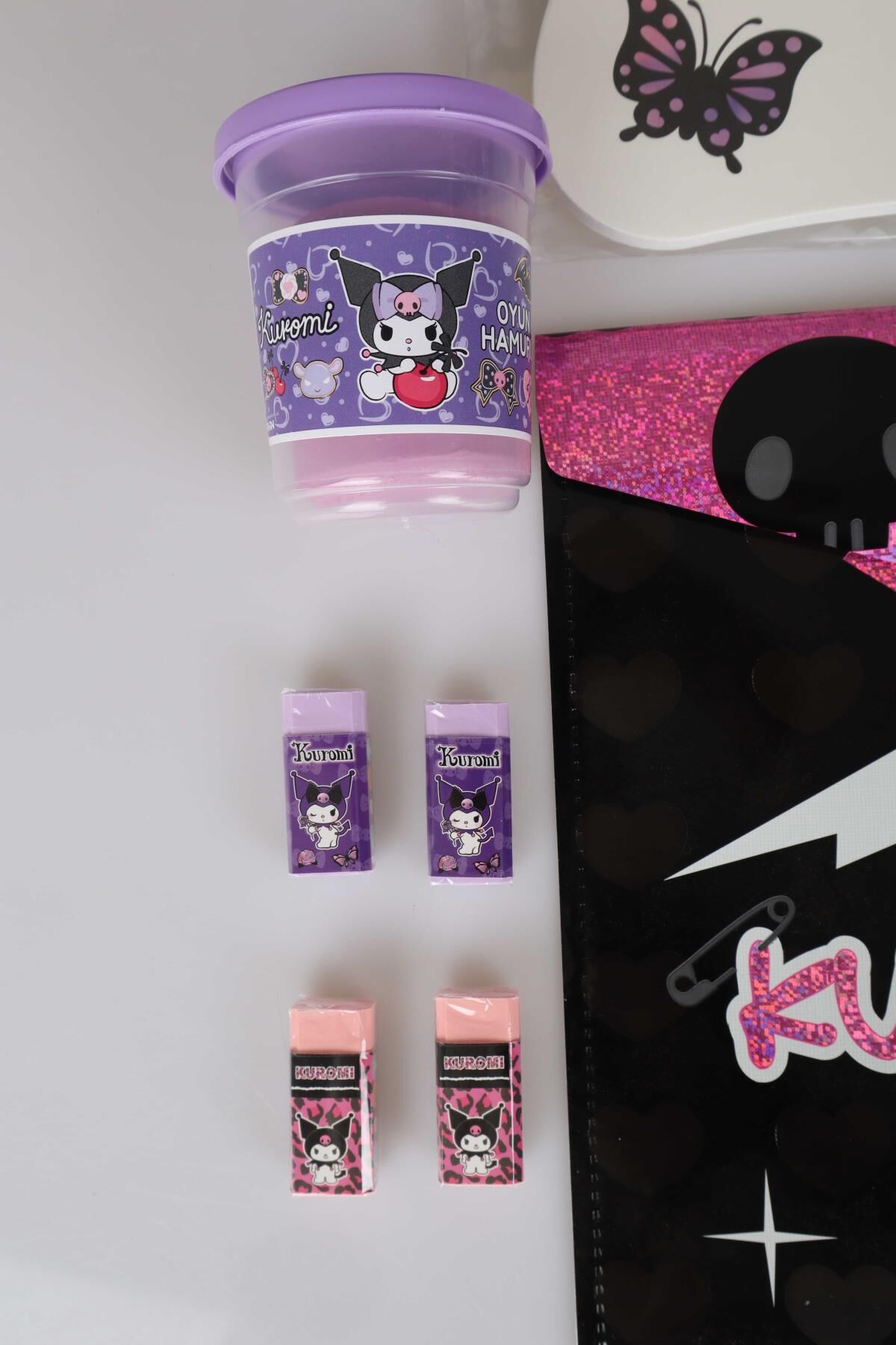 LİSANSLI KUROMI 8 PARÇA KIRTASİYE SETİ KUMBARA,YAZI TAHTASI,OYUN HAMURU,4 ADET SİLGİ VE ÇITÇIT DOSYA