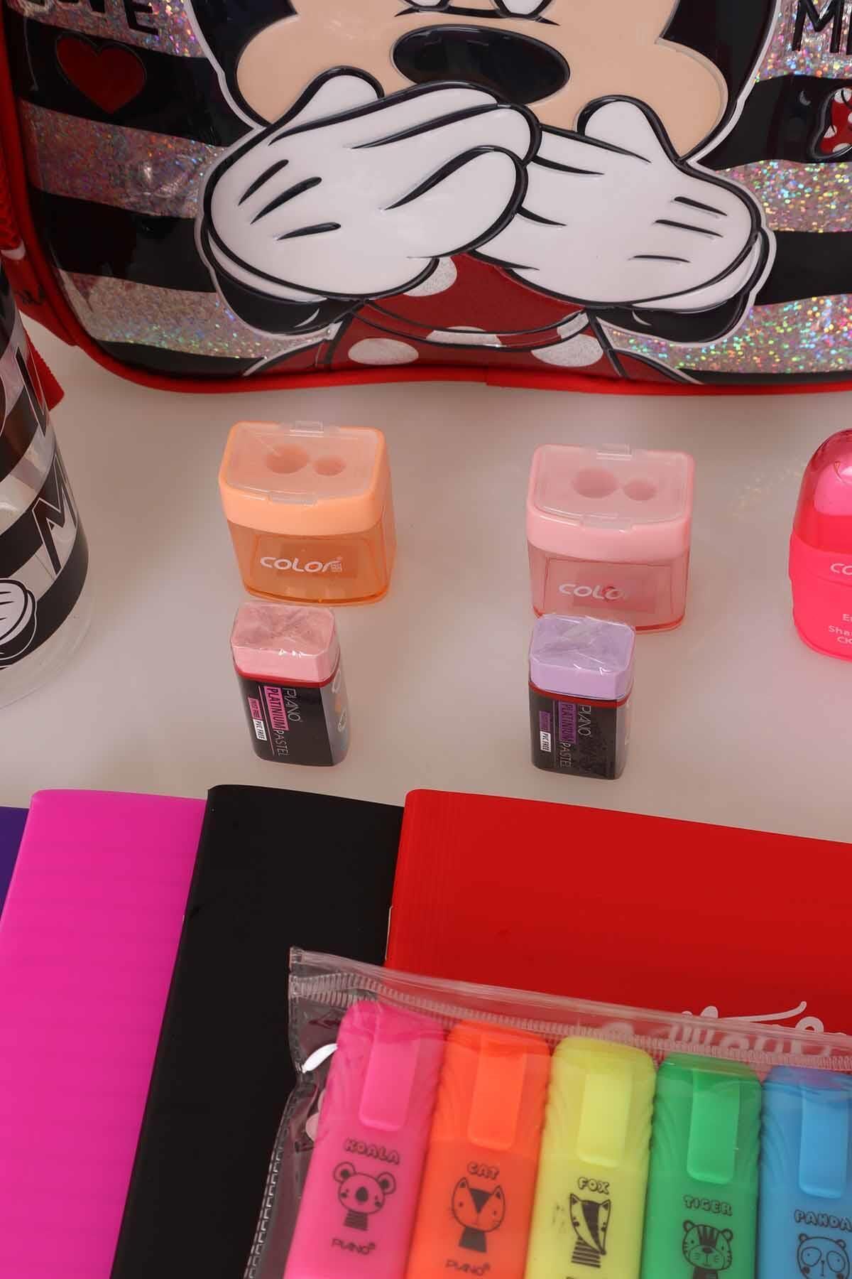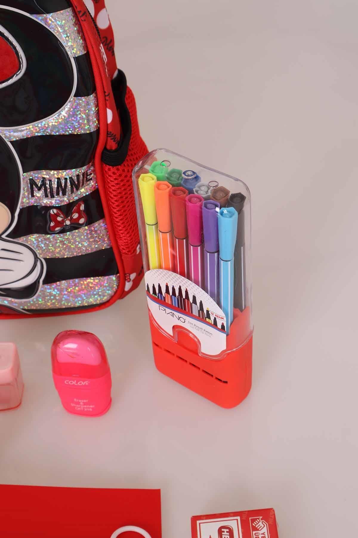 DEKOMUS MINNIE MOUE seven miniklerimizin yanında! MINNIE MOUE seven çocuklar için özel olarak hazırlanan bu seti çok sevecekler! Matara: TRITAN Ürünün kapasitesi 500 ml'dir. Açılır kapanır kapak sayesinde dökülme problemi olmadan rahatlıkla kullanılabilir. Okul çantası: Anaokul 1 adet anaokul çantası, 1 adet matara,1 adet fatih 12'li kurşun kalem,1 adet 12'li kırmızı kurşun kalem,2 adet piano silgi,2 adet colorbank kalemtraş,1 adet A5 kareli defter,1 adet A5 çizgili defter,1 adet 12'li piano keçeli kalem,1 adet balşeker boyama kitabı,1 adet 12'li boya kalemi, 1adet 6'lı piano fosforlu kalem, 1 adet silgili kalemtraş gönderilecektir.MINNIE MOUE olarak sattığımız tüm ürünler orjinal ve lisanslıdır.Sağlığa zararlı kimyasal madde kullanılmamıştır.