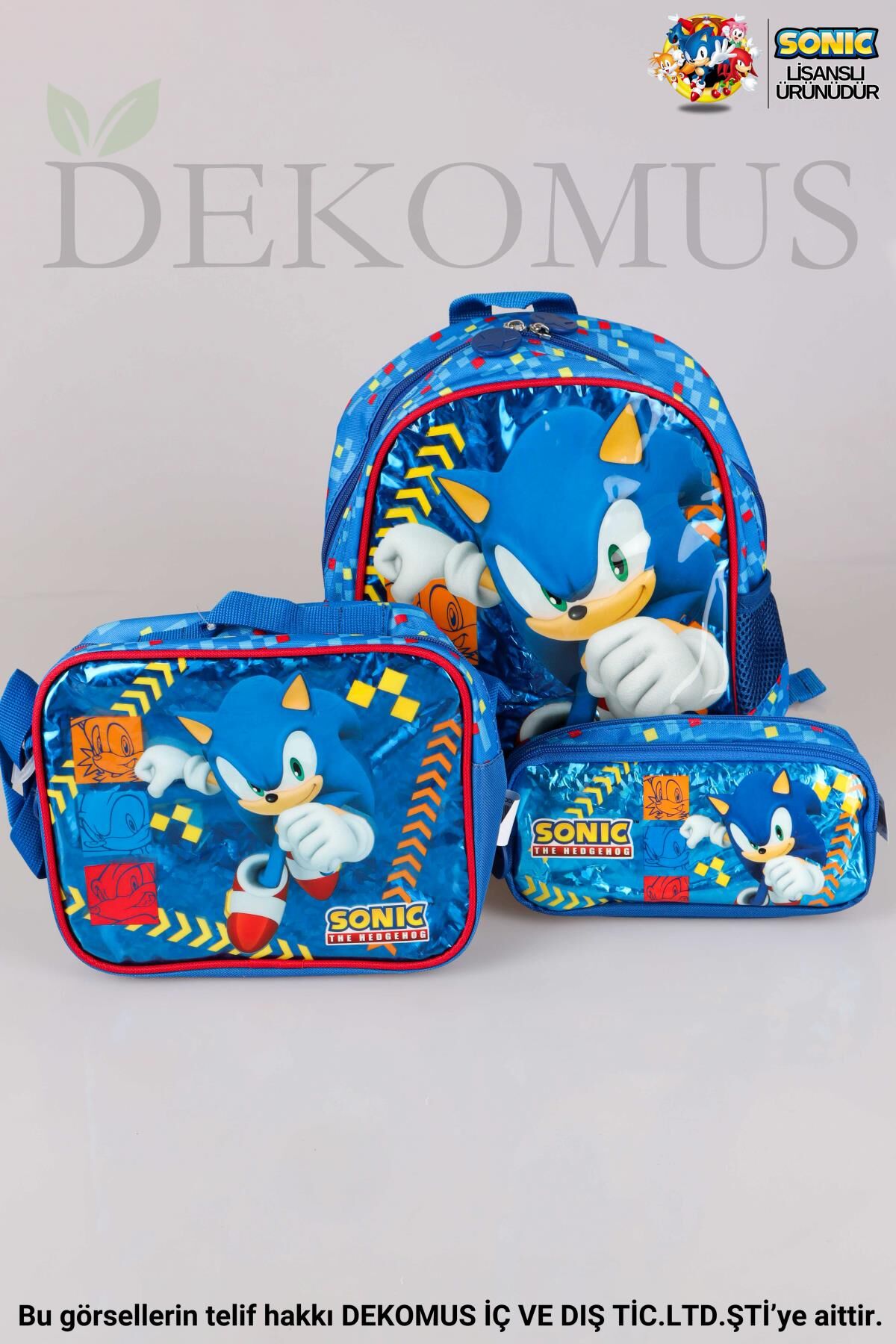 LİSANSLI SONIC '' TEK BÖLMELİ KÜÇÜK BOY 32 CM ANAOKUL ÇANTASI, BESLENME ÇANTASI VE KALEM ÇANTASI OKUL SETİ