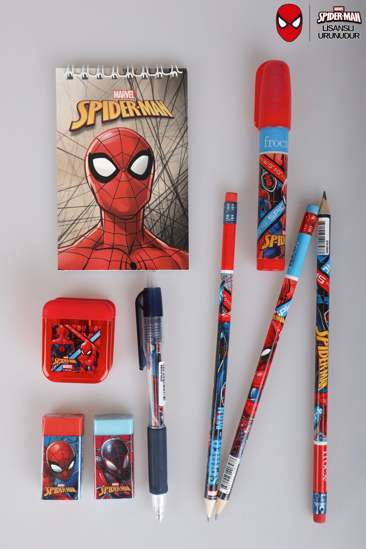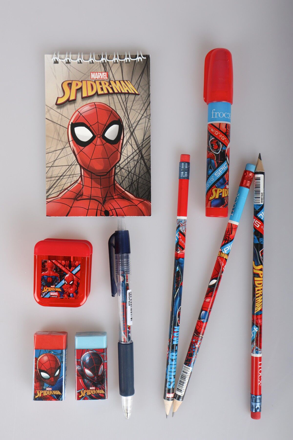 LİSANSLI SPIDERMAN 9 PARÇA KIRTASİYE SETİ UÇLU KALEM,BLOKNOT,3 ADET KURŞUN KALEM,KALEMTRAŞ,ROKET SİLGİ