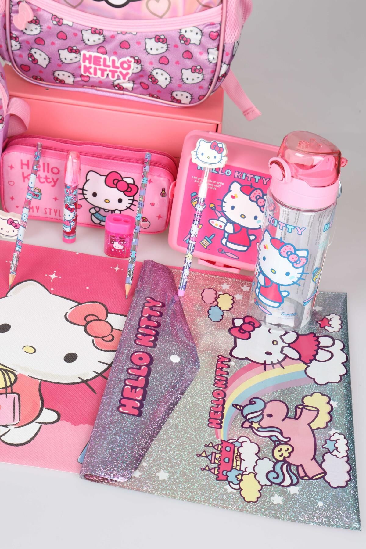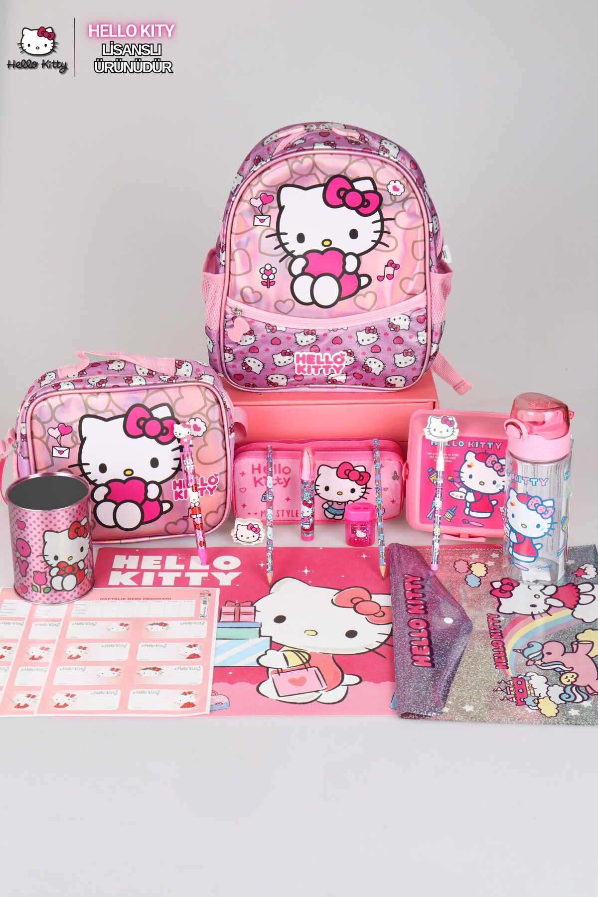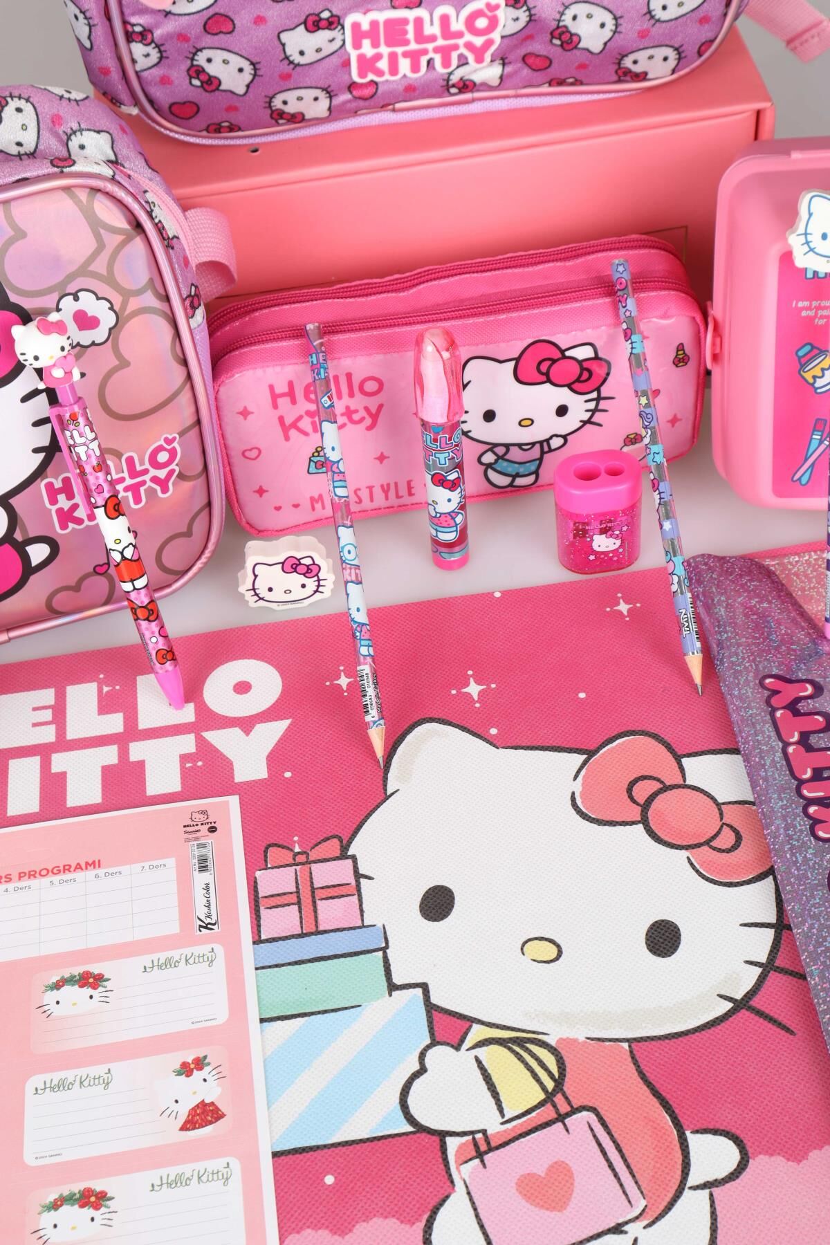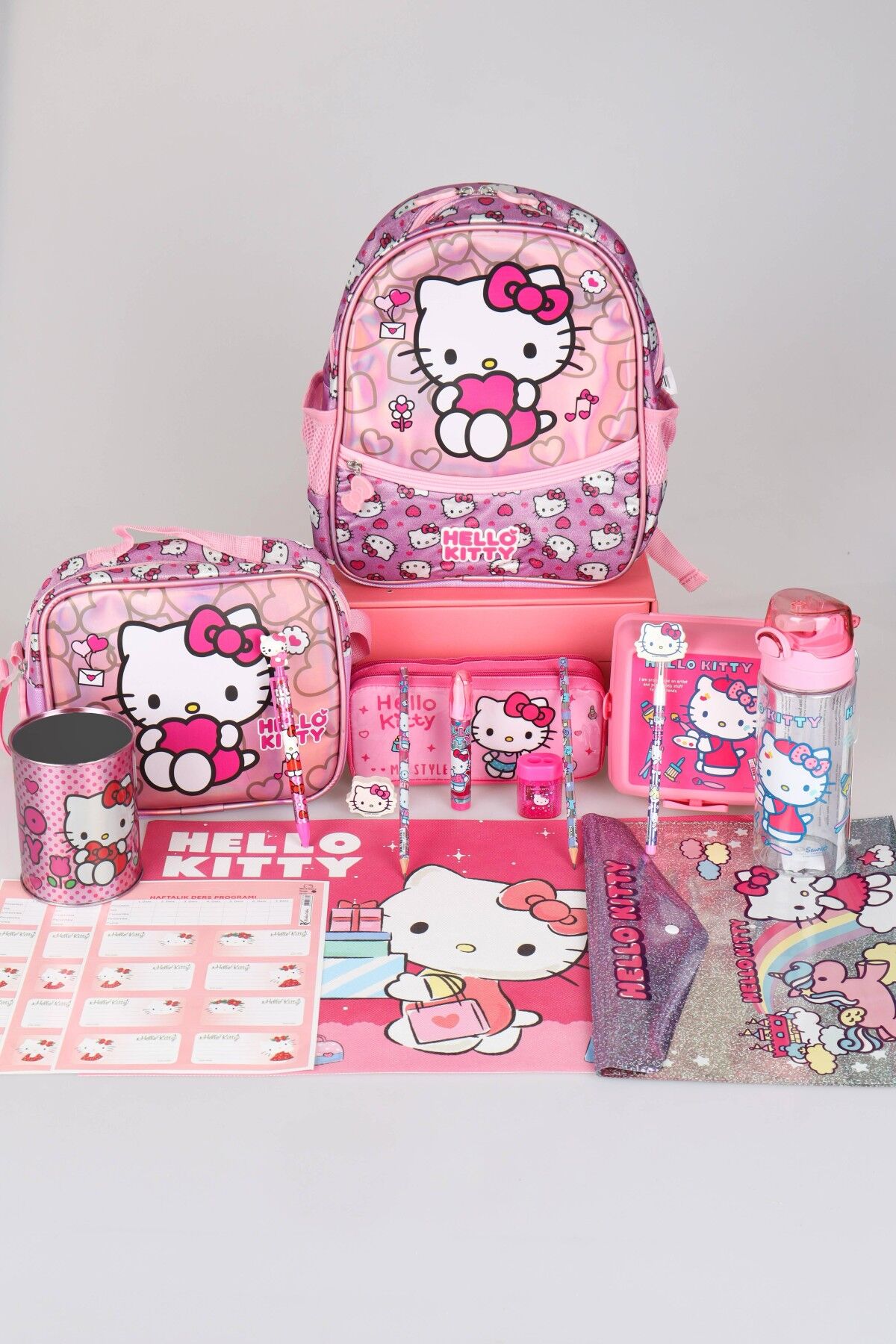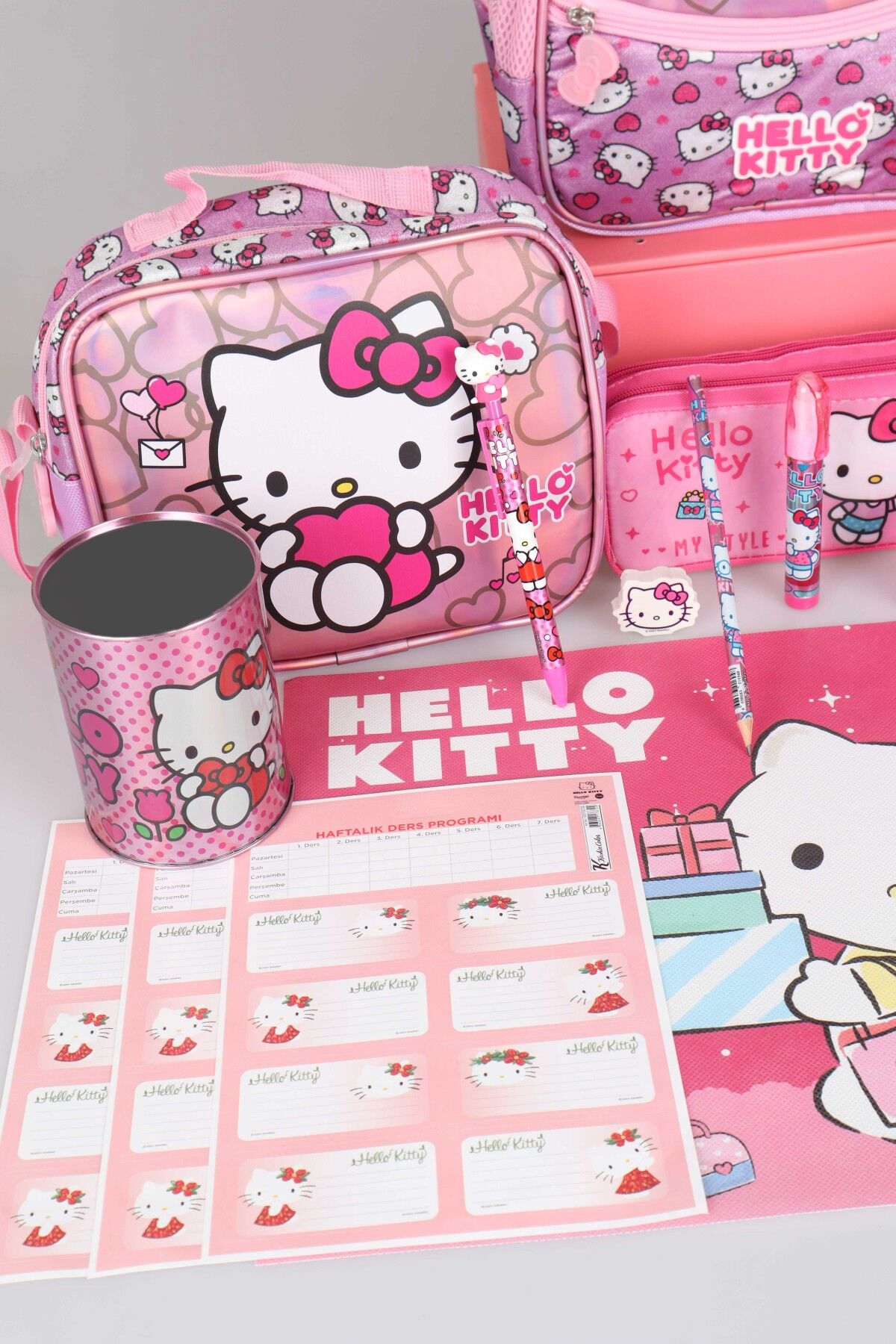 TEK BÖLMELİ KÜÇÜK BOY 32 CM HELLO KITTY ANAOKUL,BESLENME VE KALEM ÇANTASI İLE BESLENME KABI,MATARA KIRTASİYE OKUL SETİ