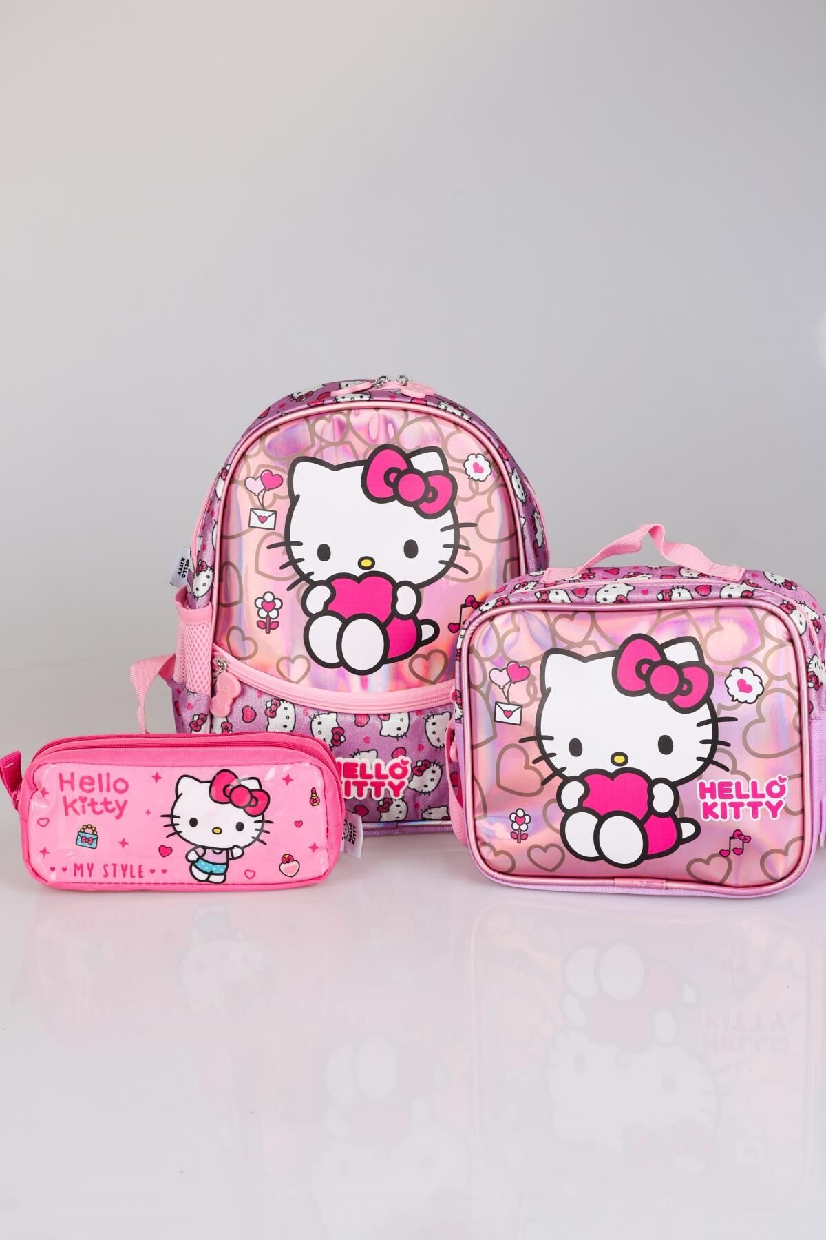 DEKOMUS HELLO KITTY seven miniklerimizin yanında! Sizler için özel olarak hazırlanan bu seti çok seveceksiniz :) Sağlığa zararlı kimyasal madde kullanılmamıştır. HELLO KITTY olarak sattığımız tüm ürünler orjinal ve lisanslıdır. 1 adet anaokul çantası ,1 adet beslenme çantası,1 adet kalem çantası gönderilecektir.