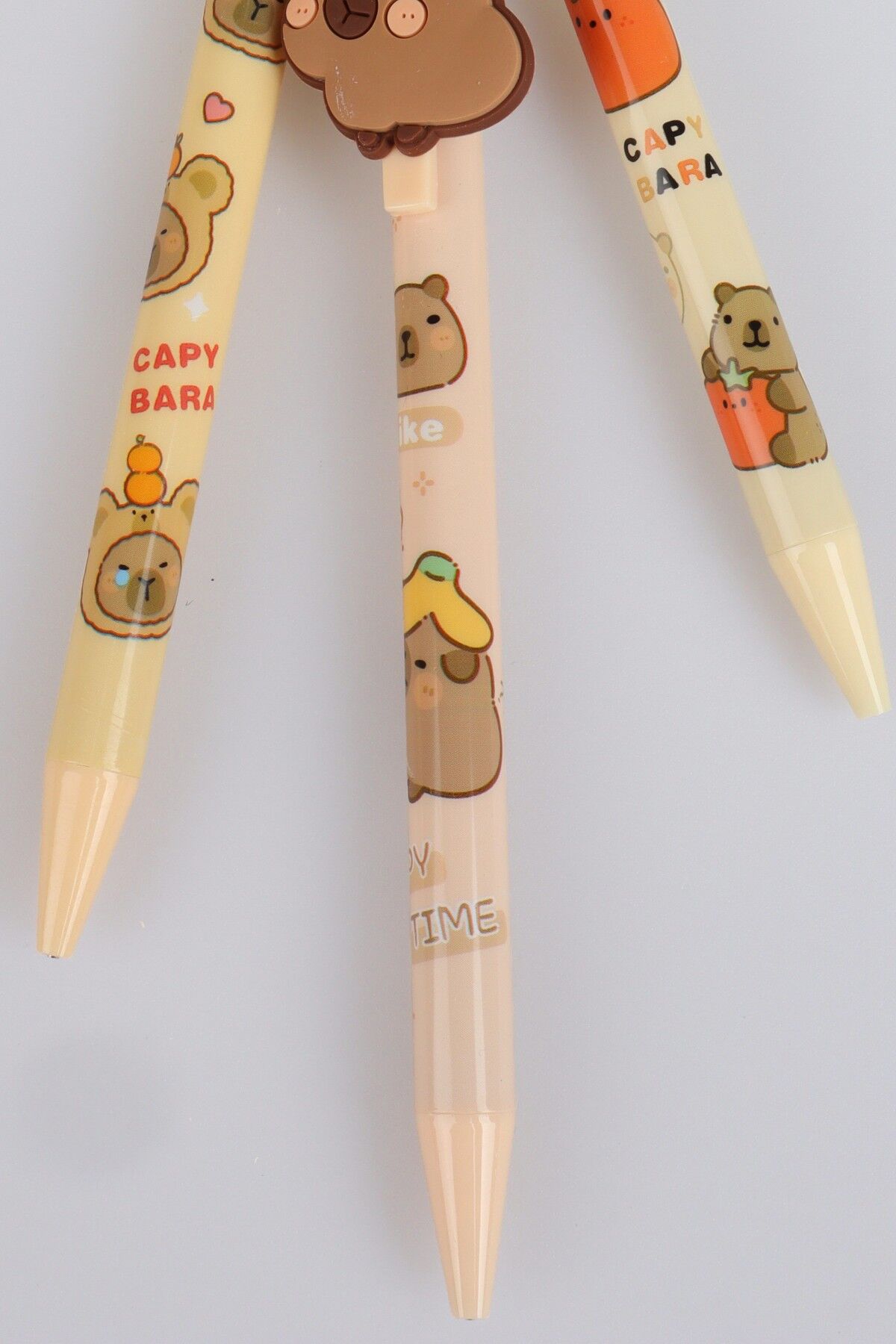 Tatlı Capybara karakterleri ve şirin detaylarıyla masa düzeninize renk katan bu kalemler, aynı zamanda harika bir hediye seçeneğidir. Kaliteli malzeme yapısı sayesinde uzun süreli kullanım sunar ve estetik görünümü ile koleksiyonluk bir ürün haline gelir.