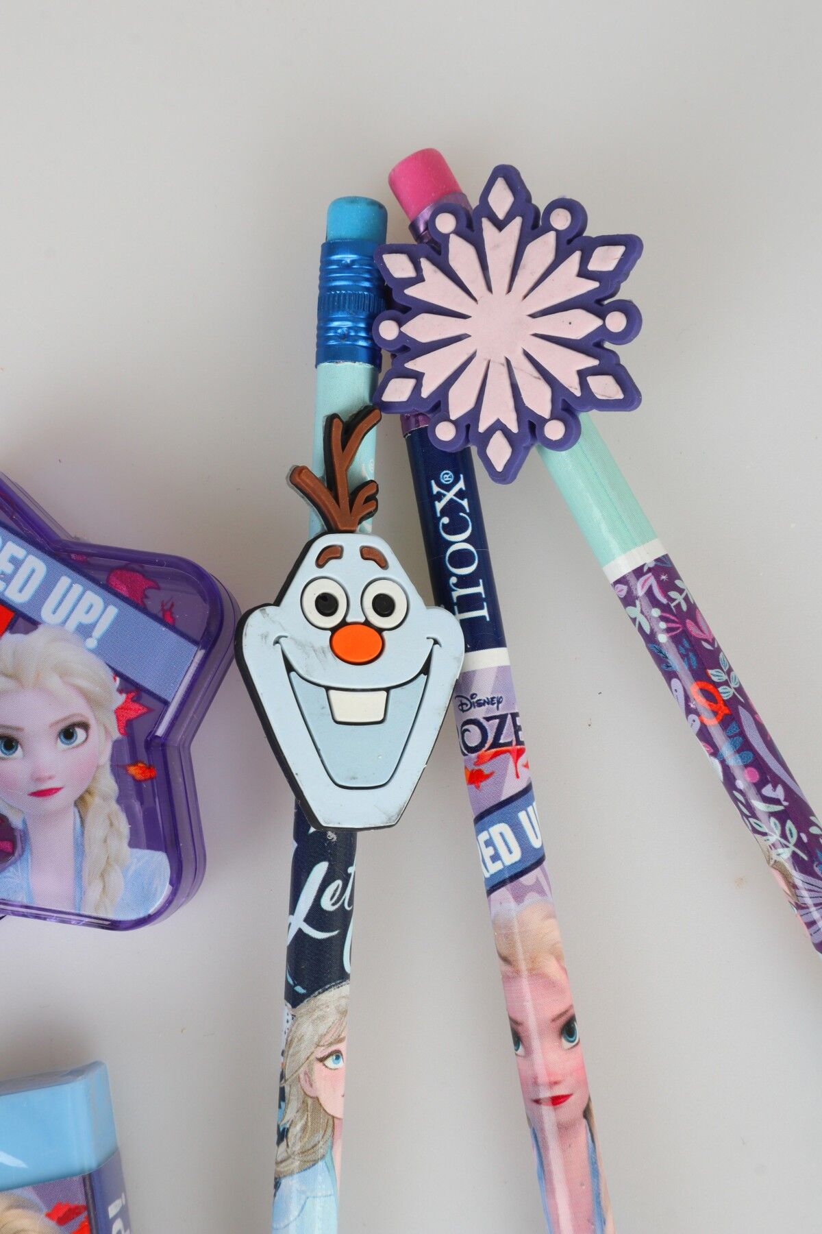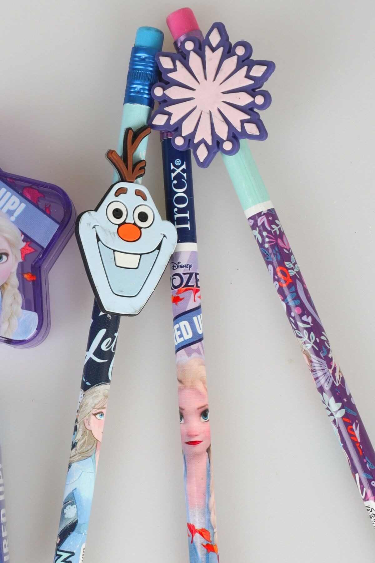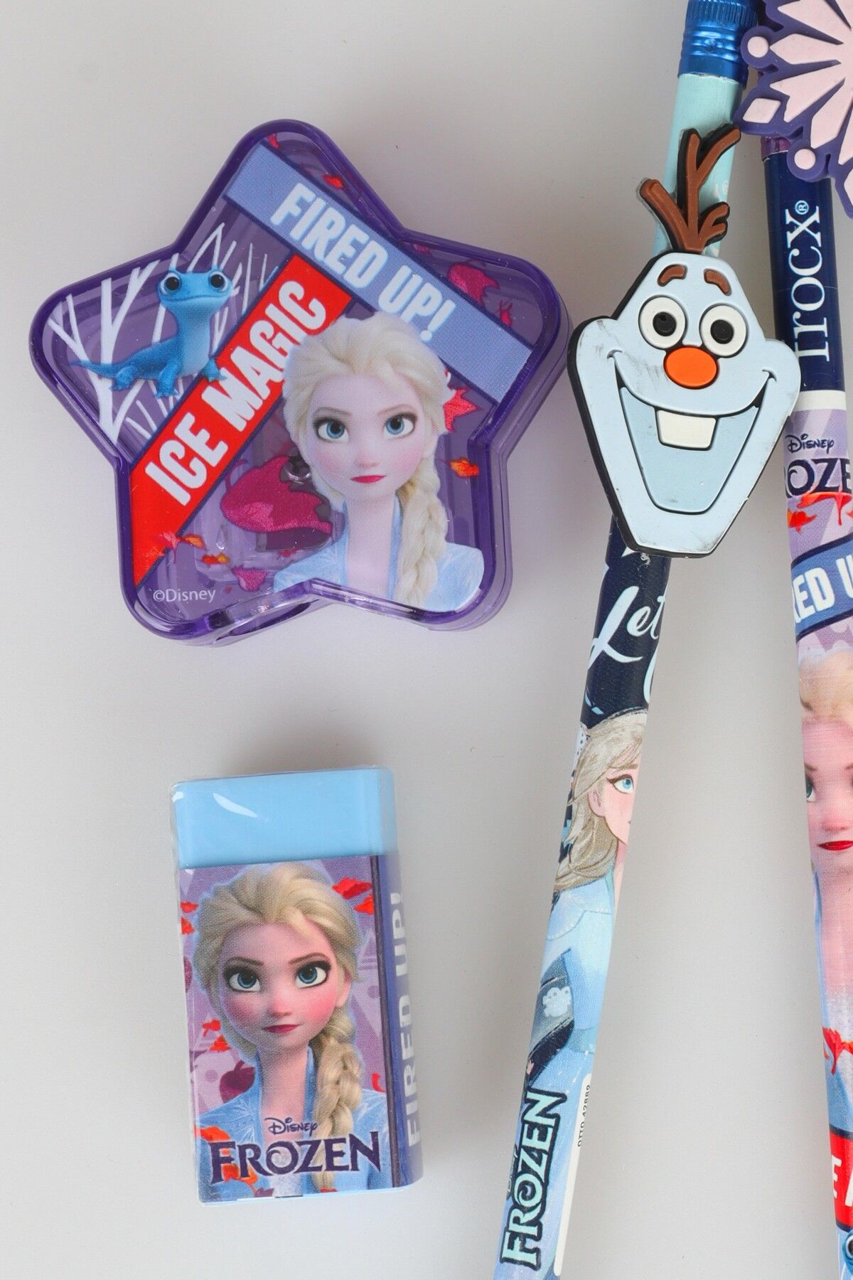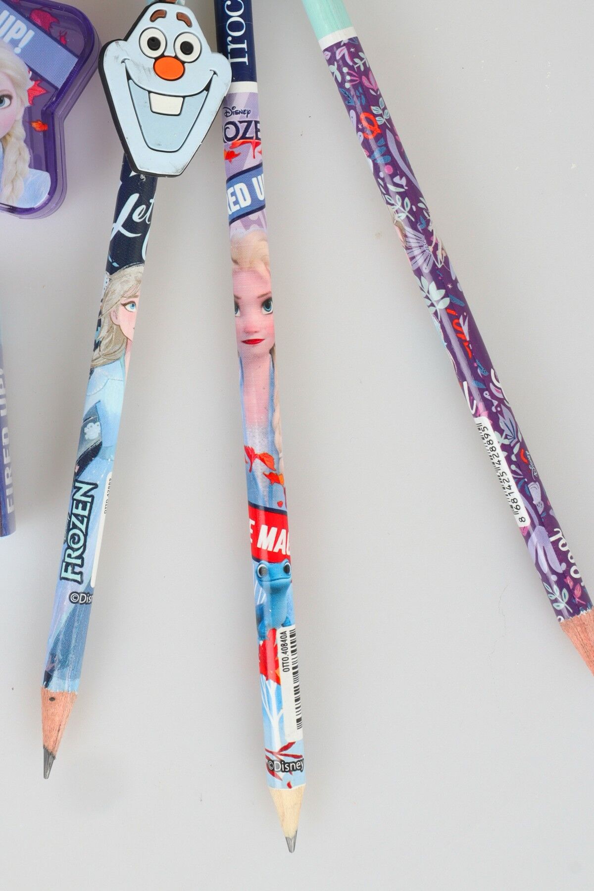 x Dekomus Lisanslı Elsa Frozen 2 Adet Figürlü Kurşun Kalem, Yıldız Kalemtraş, Silgili Kurşun Kalem Ve Silgi Seti