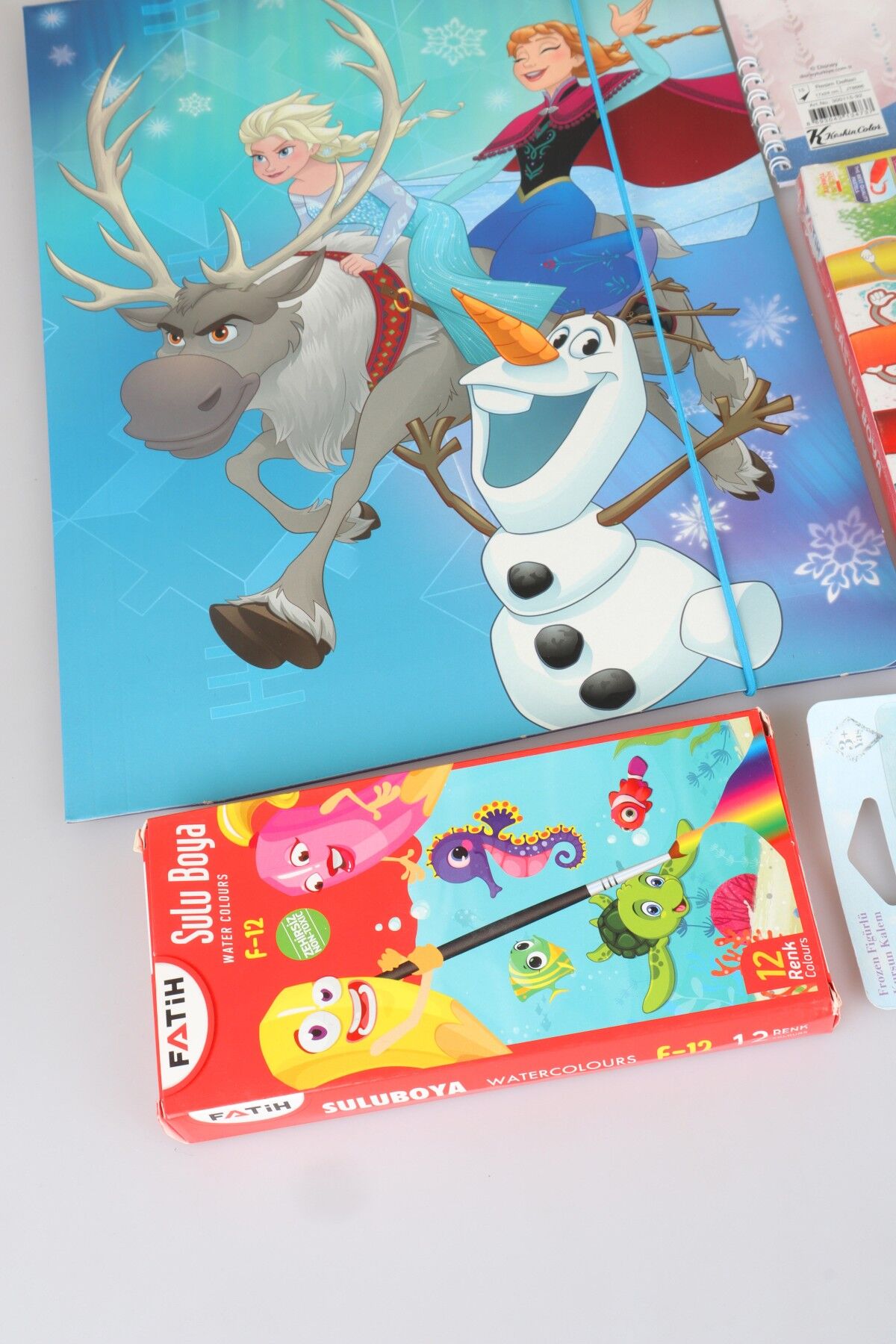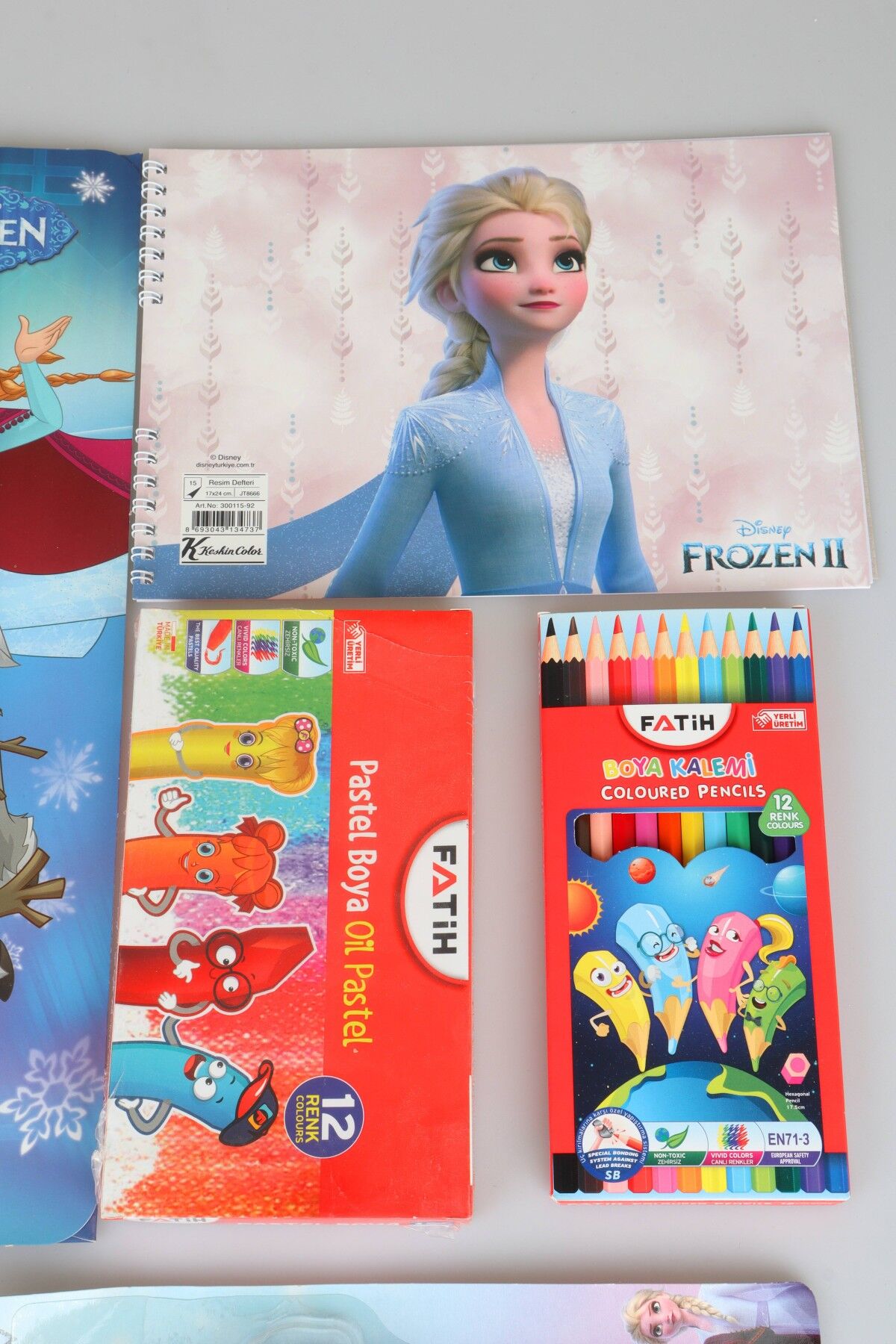 x Dekomus Lisanslı Elsa Frozen 40 Parça Boyama Seti Resim Defteri,Kuru Boya,Pastel Boya,Sulu Boya, 2 Adet Figürlü Kurşun Kalem, Yıldız Kalemtraş, Silgili Kurşun Kalem Ve Silgi Seti
