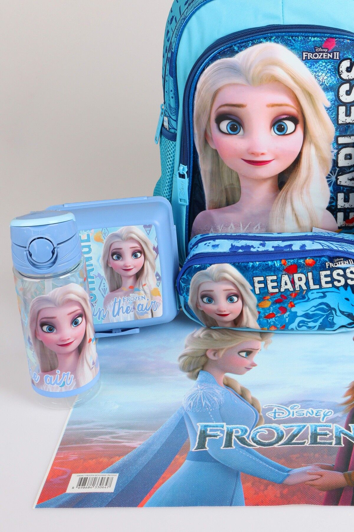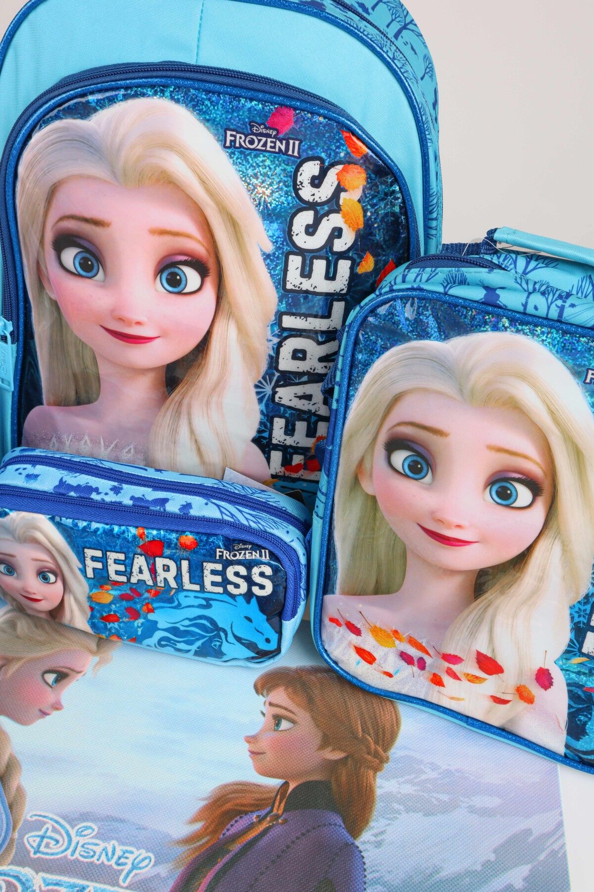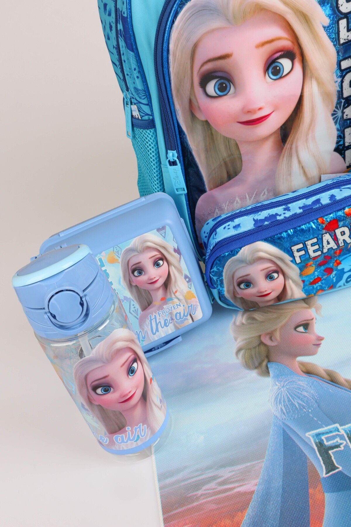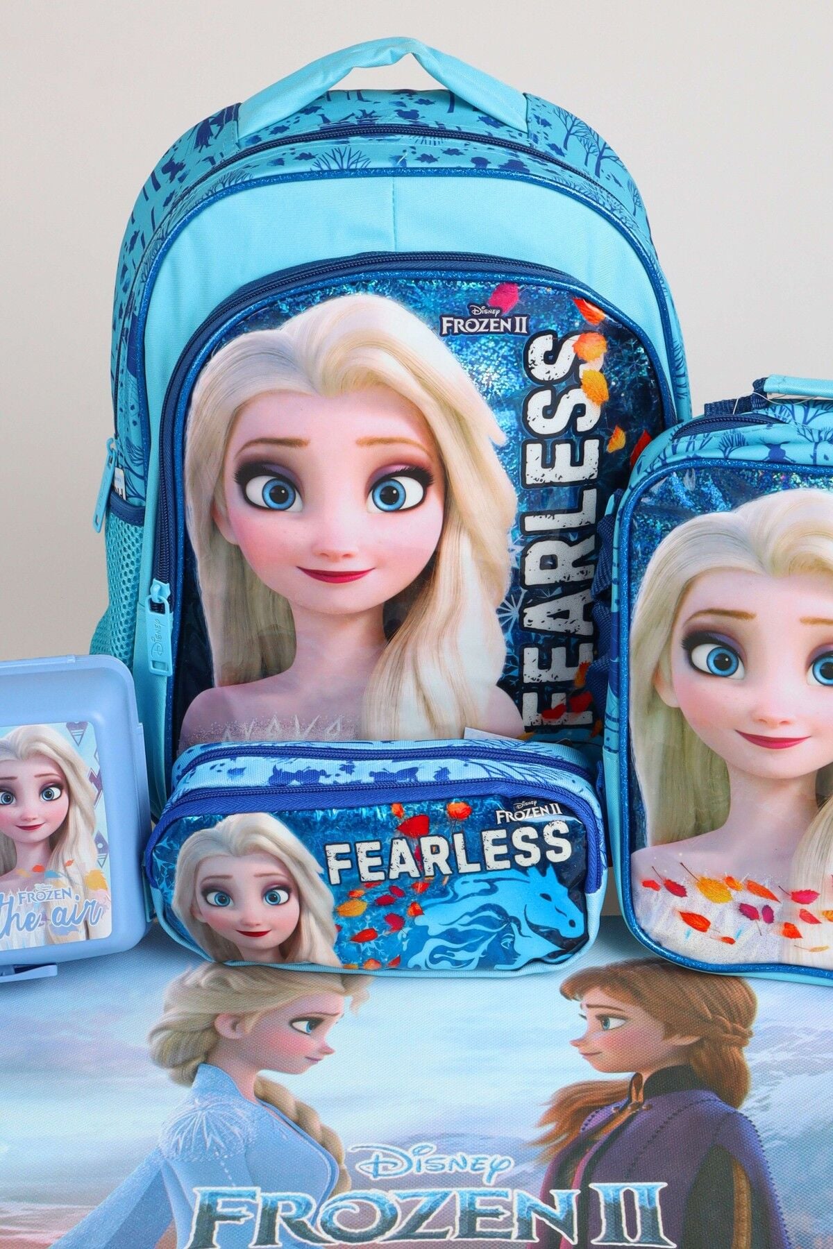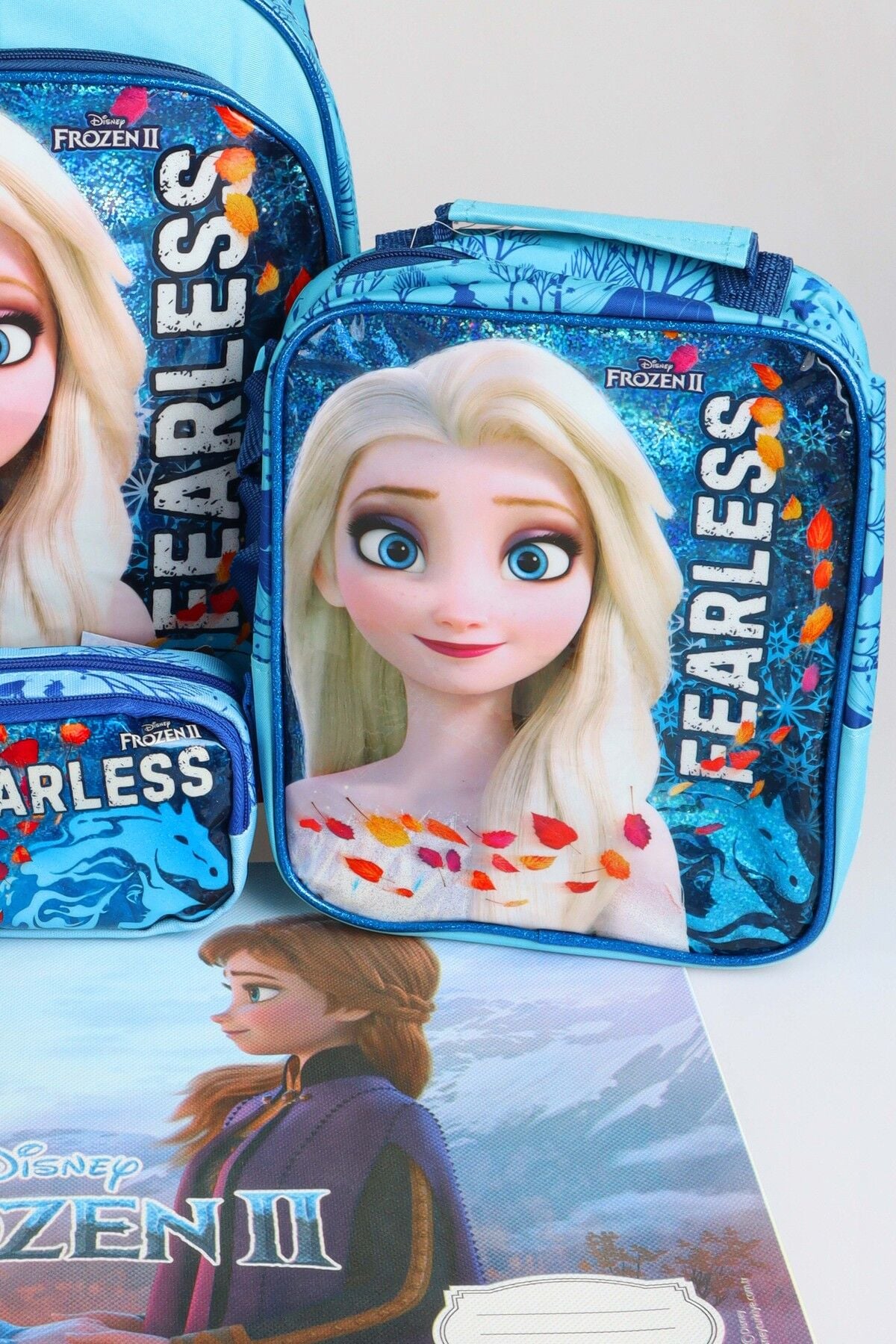 x Dekomus Lisanslı ''Fearless Collection'' Elsa Frozen Beslenme ve Okul Seti Okul,Termoslu Beslenme ve Kalem Çantası,Matara,Beslenme Kabı