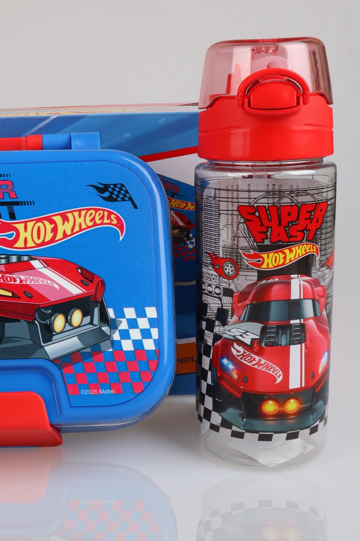 x Dekomus Lisanslı Hotwheels Super Fast Collection 2 Katlı Paslanmaz Çelik Yemek Kabı Ve 500 Ml Matara Seti