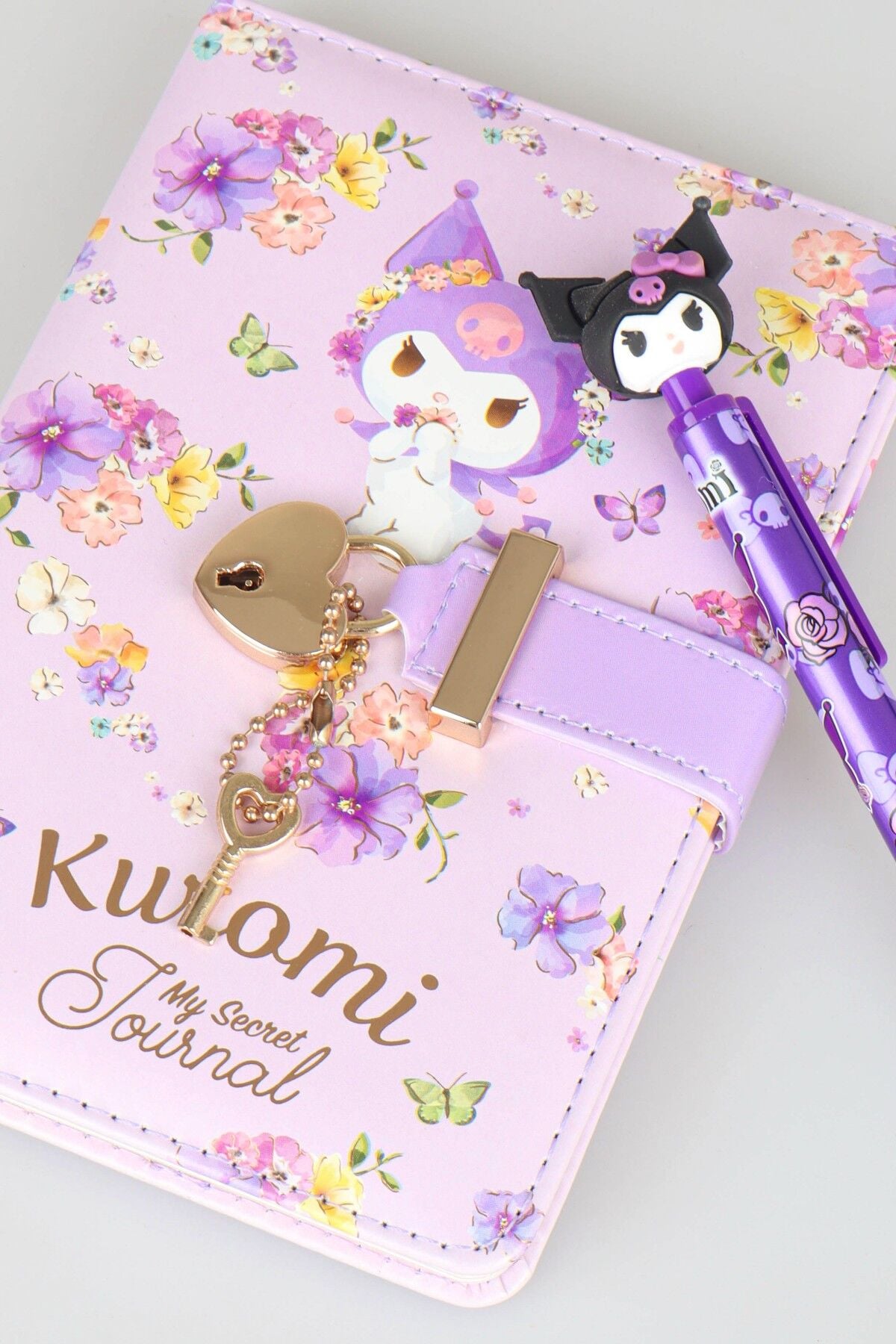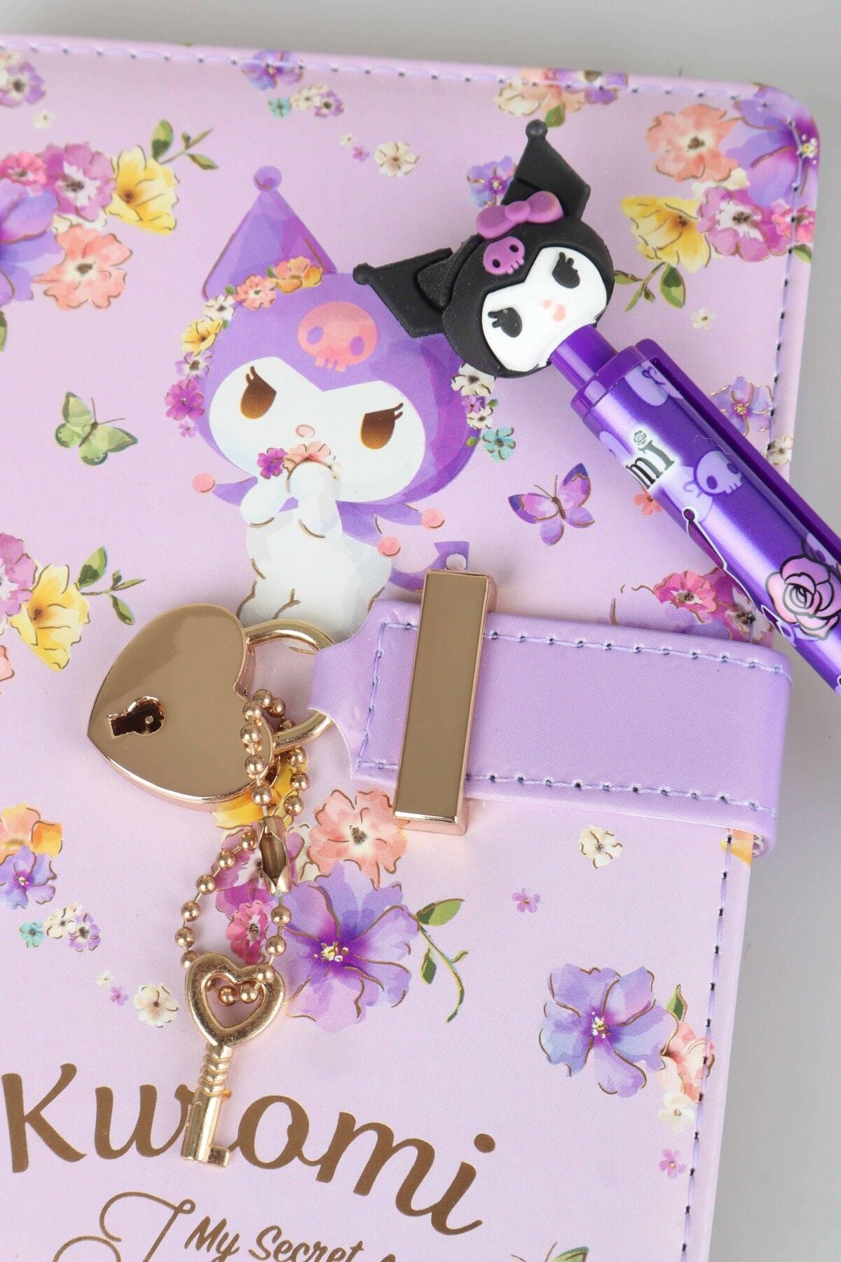 x Dekomus Lisanslı Kuromi Secret Garden Edition Kilitli Hatıra Defteri & 3d Figürlü Uçlu Kalem 0.7 Mm 2'lisi