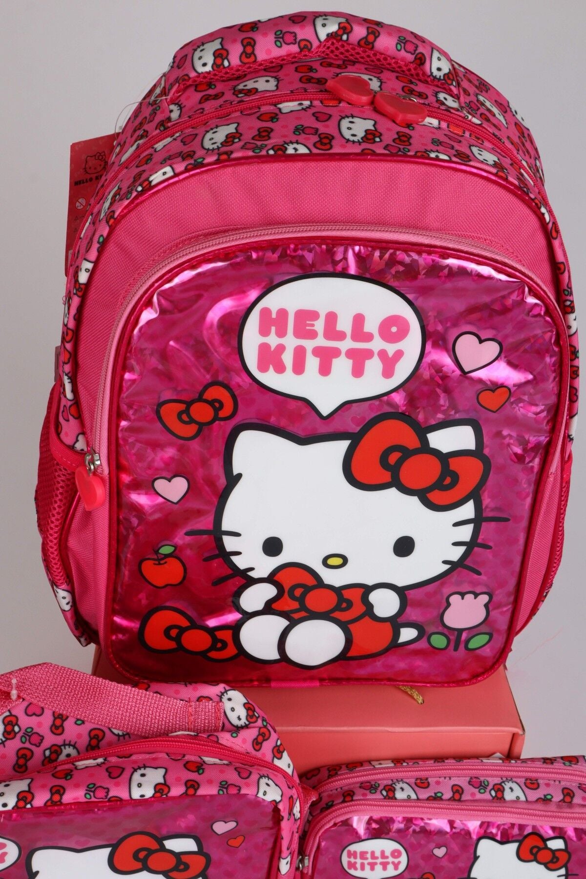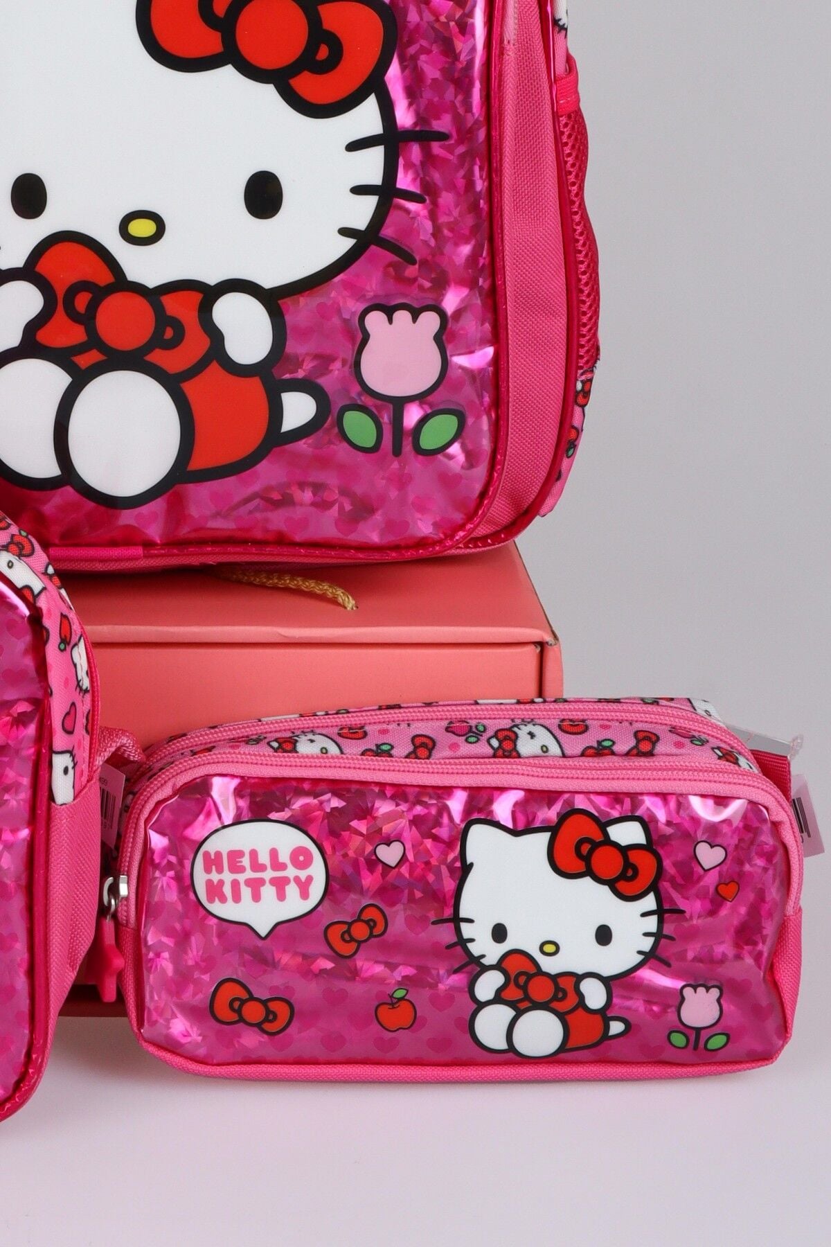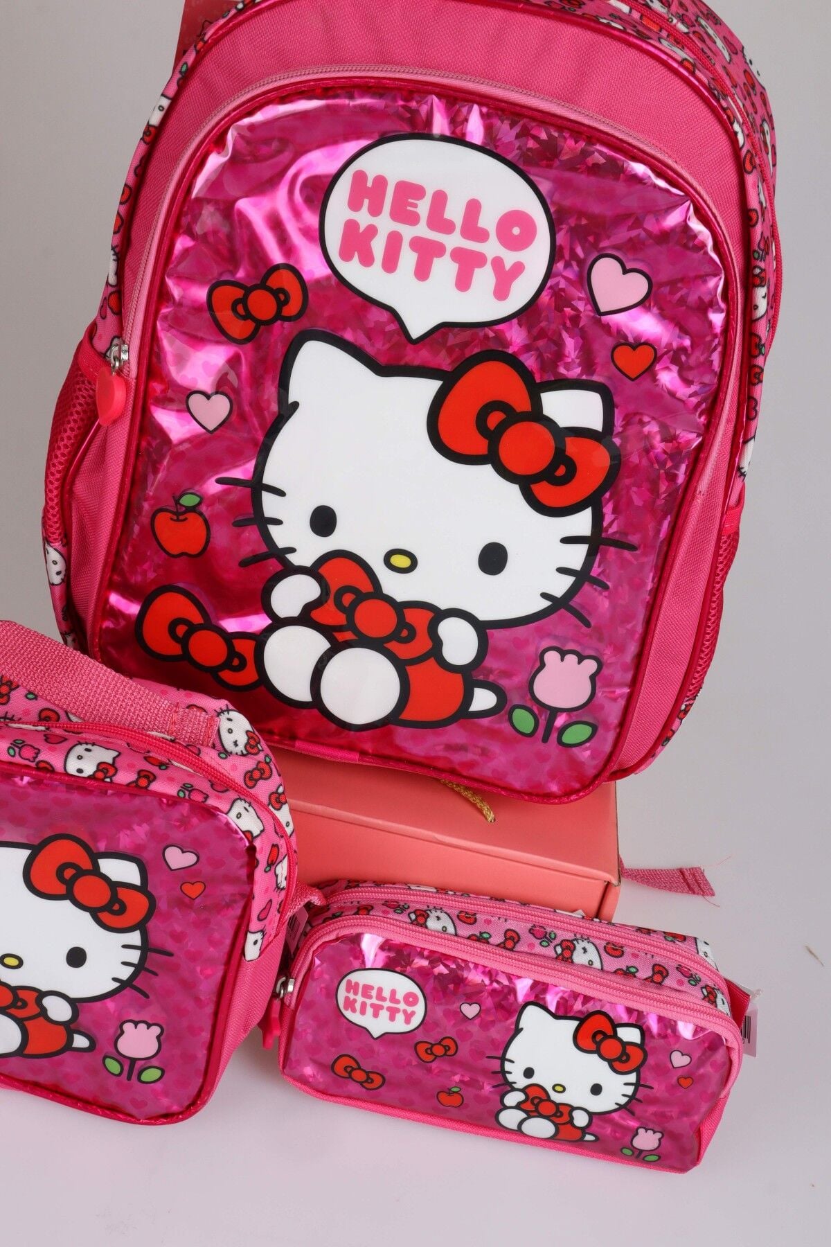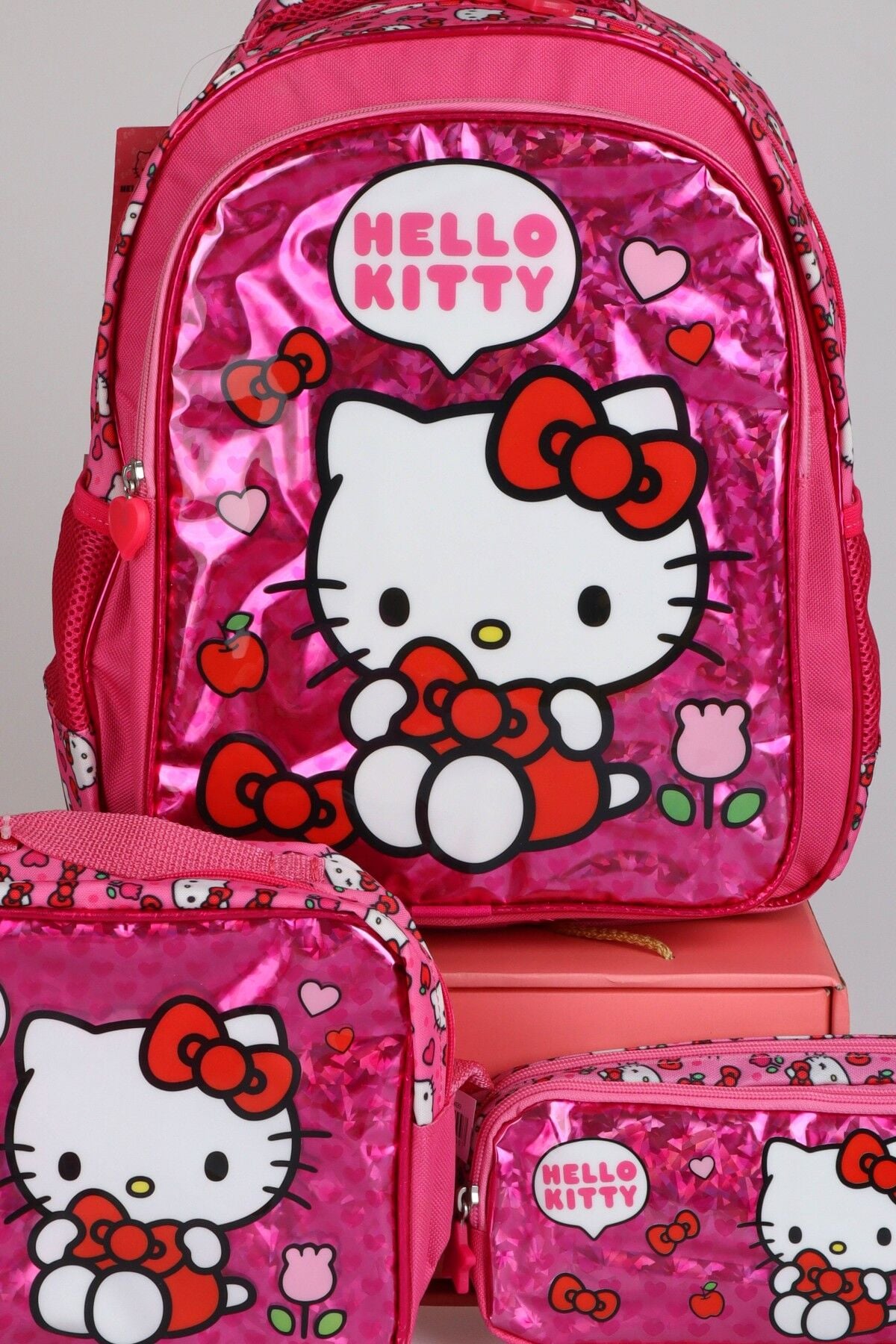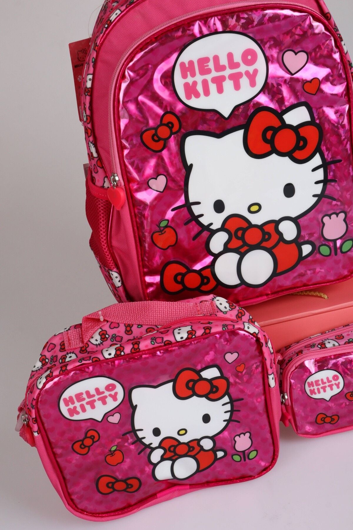 x Dekomus ''Love Shine Collection'' Hello Kitty Lisanslı Ortopedik İlkokul,Beslenme ve Kalem Çantası Seti