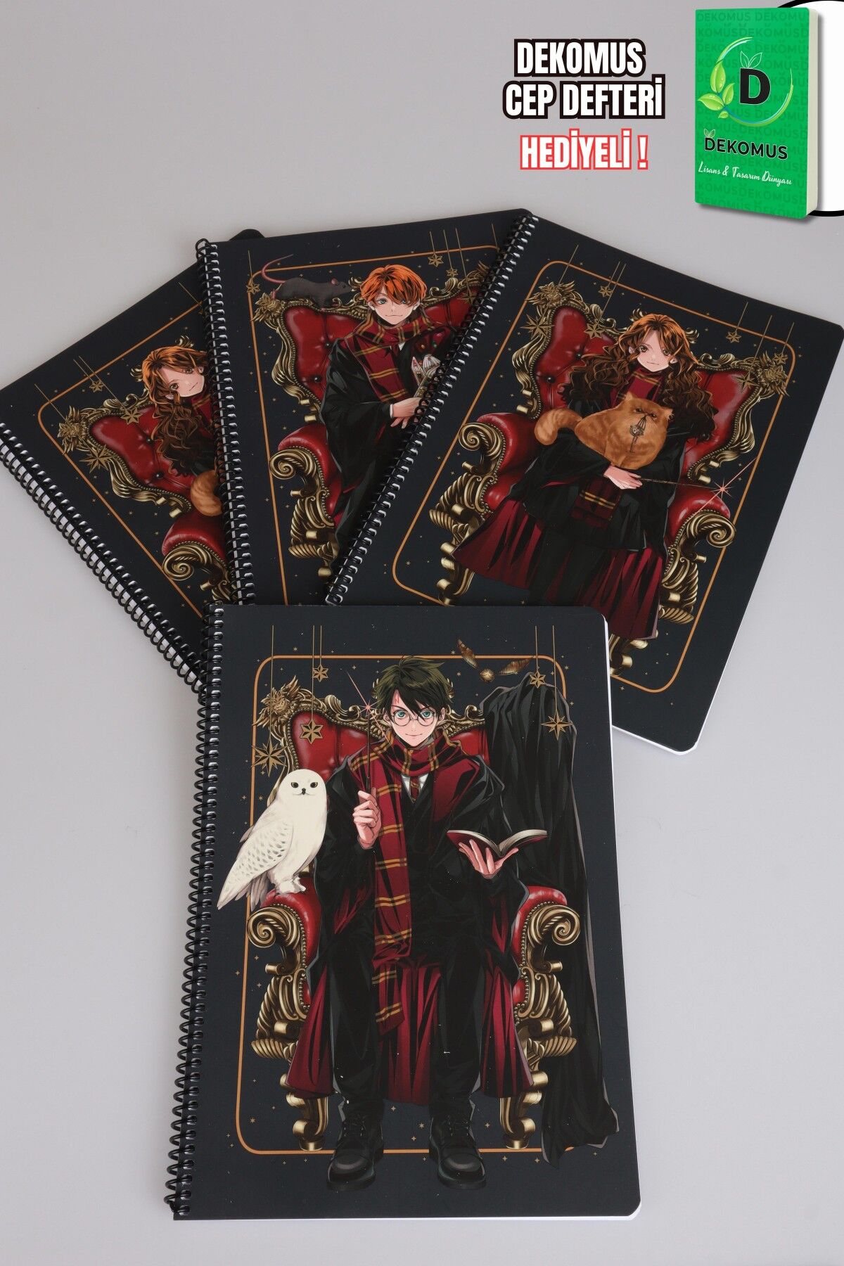Büyünün en karizmatik hali şimdi defterinde! Wizarding World evreninden ilham alan bu A4 spiral defterler, modern ve etkileyici karakter tasarımlarıyla dikkat çeker.