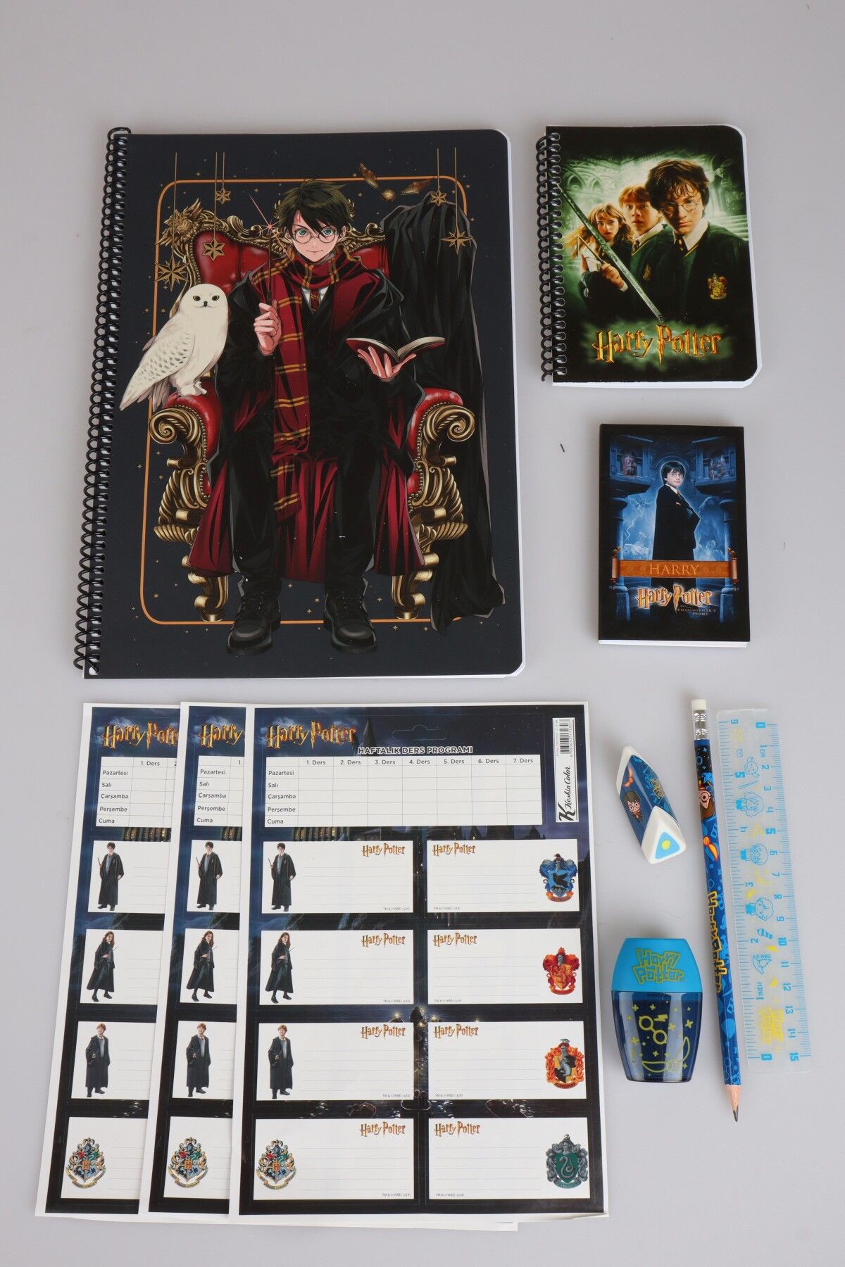 x Dekomus ''Wizard Icons Collection'' Harry Potter Lisanslı 10 Parça Kırtasiye Seti A4 defter,Cetvel,Kurşun Kalem,Silgi,Kalemtraş