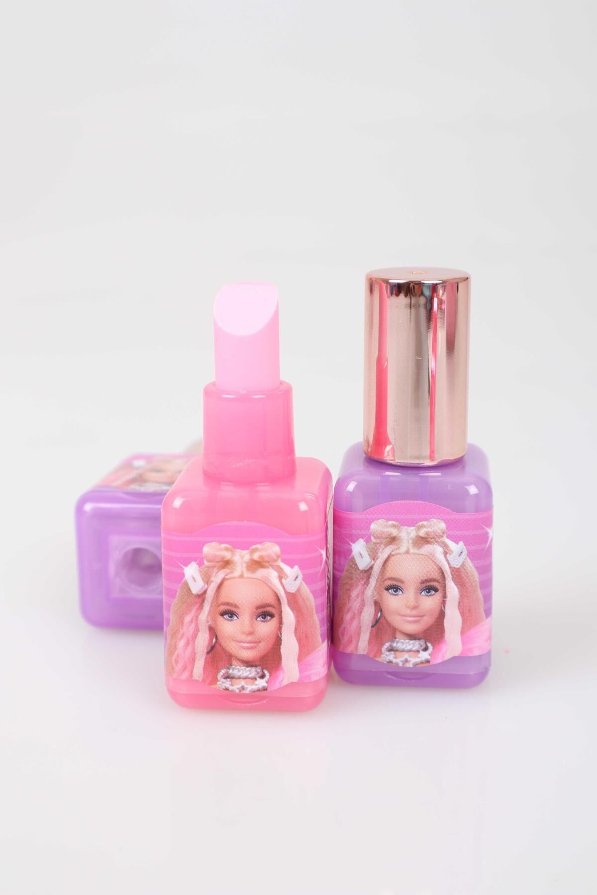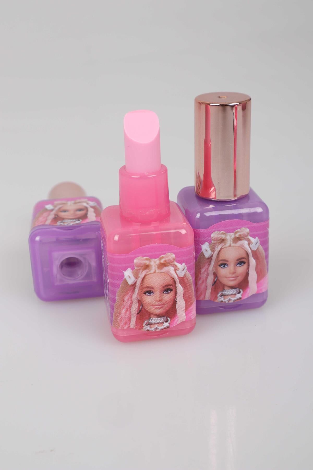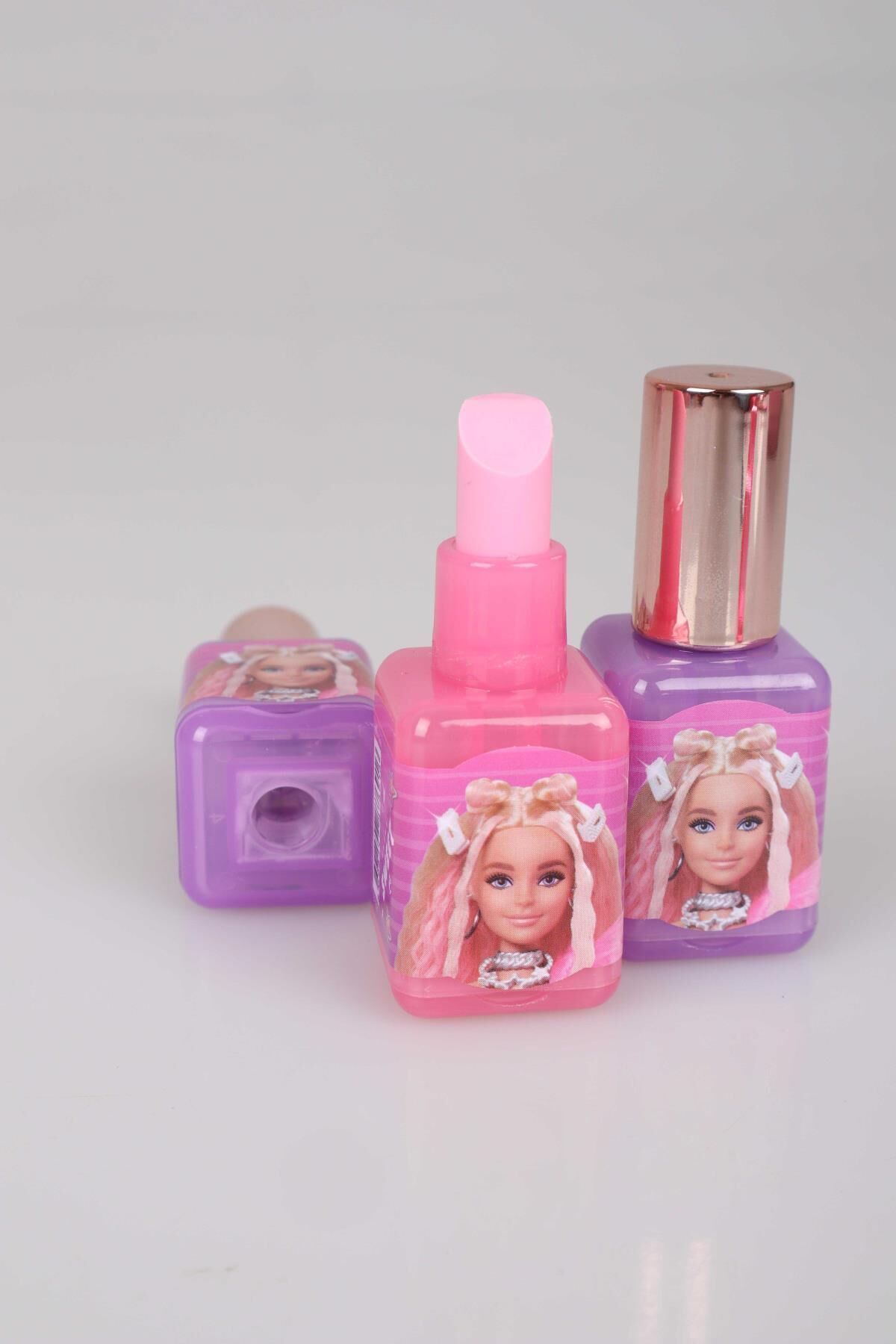 DEKOMUS BARBIE seven miniklerimizin yanında! Sizler için özel olarak hazırlanan bu kalemtraş ile kalem açmakta silmekte çok keyifli ! :) BARBIE olarak sattığımız tüm ürünler orjinal ve lisanslıdır.Sağlığa zararlı kimyasal madde kullanılmamıştır.1 adet silgili kalemtraş gönderilecektir.