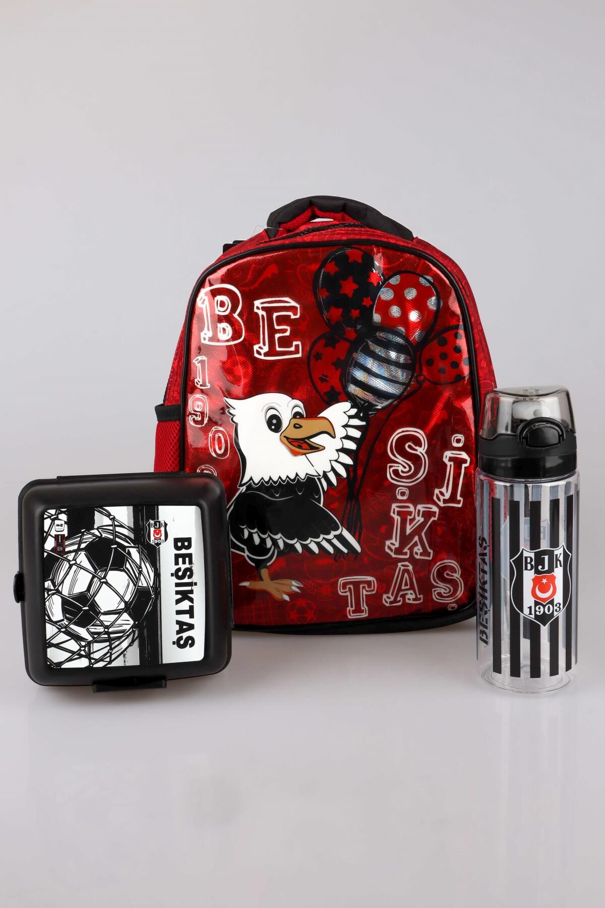 YENİ SEZON LİSANSLI BEŞİKTAŞ TEK BÖLMELİ KÜÇÜK BOY 32 CM ANAOKUL ÇANTASI,BESLENME KABI VE 500 ML TRITAN MATARA SETİ