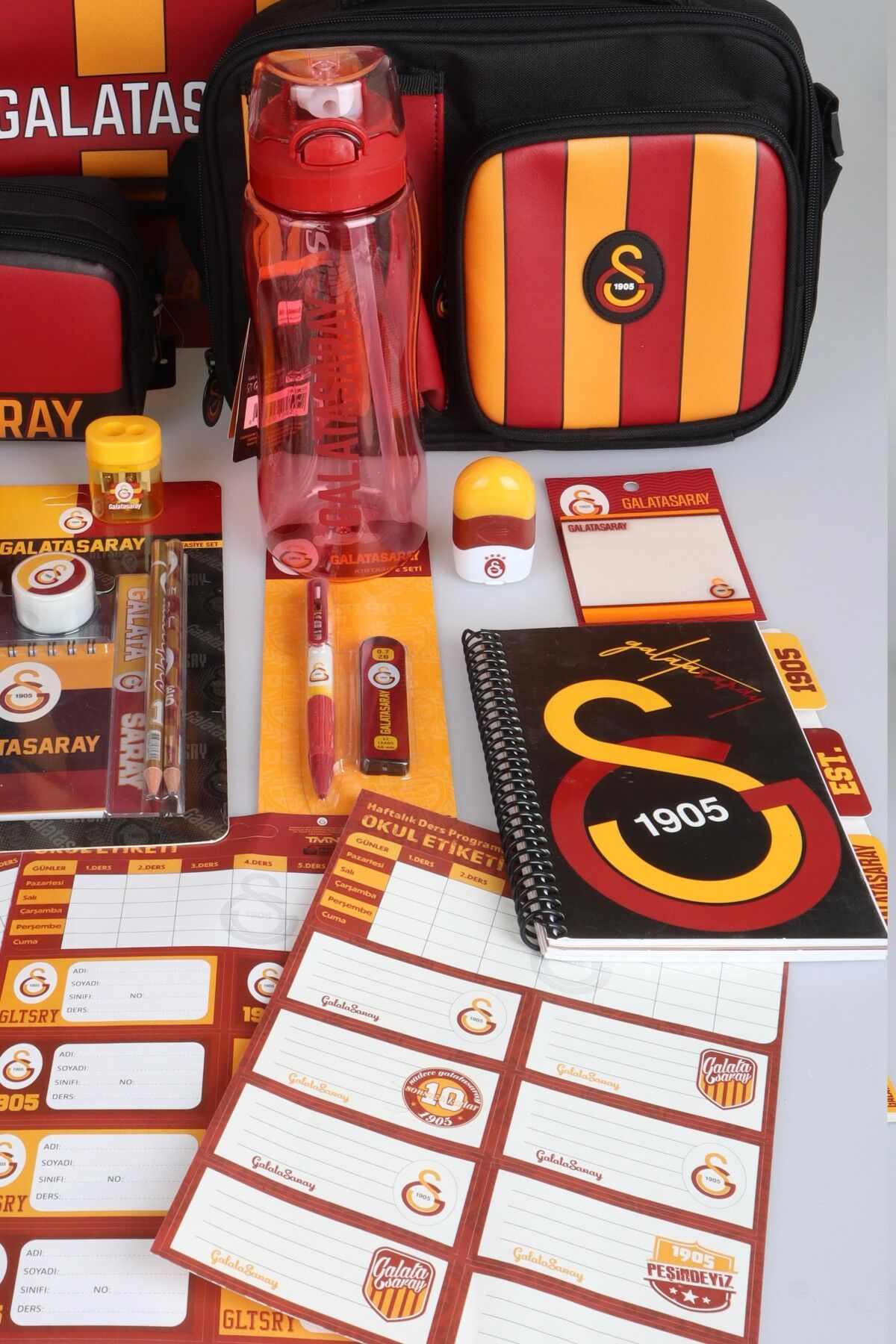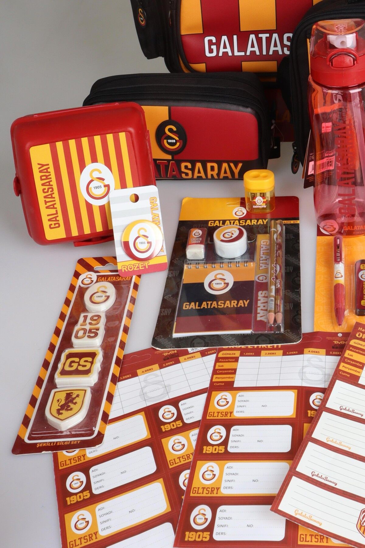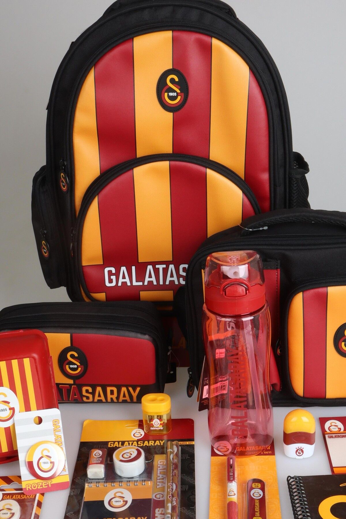 YENİ SEZON LİSANSLI GALATASARAY PARÇALI FULL KIRTASİYE OKUL SETİ 3 BÖLMELİ OKUL,KALEM VE BESLENME ÇANTASI,700 ML MATARA,BESLENME KABI SETİ
