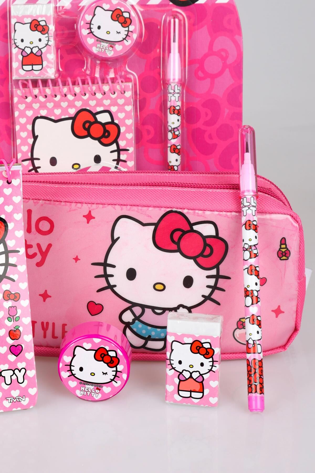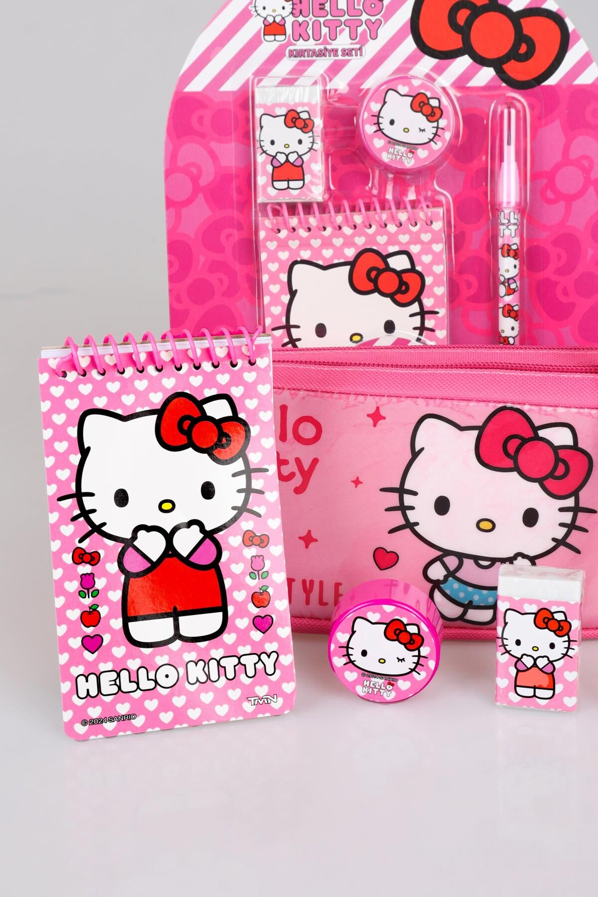 YENİ SEZON LİSANSLI HELLO KITTY KALEM ÇANTASI,NOT DEFTERİ,KALEMTRAŞ,GEÇMELİ KURŞUN KALEM VE SİLGİ SETİ