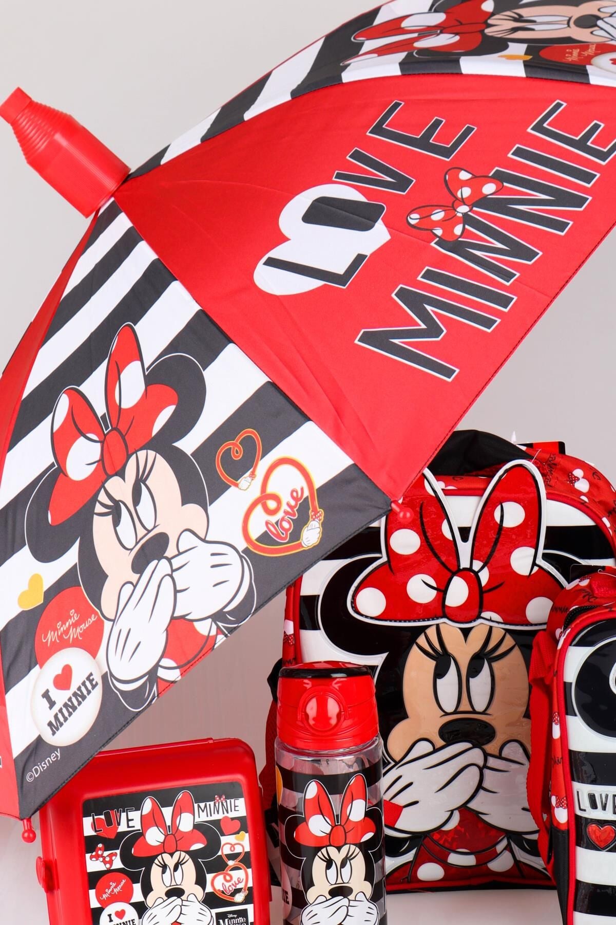 YENİ SEZON LİSANSLI MINNIE MOUSE ANAOKUL,BESLENME ÇANTASI İLE BESLENME KABI,MATARA 500 ML,ŞEMSİYE VE KIRTASİYE OKUL SETİ