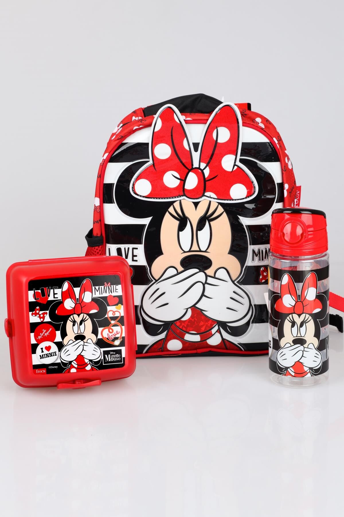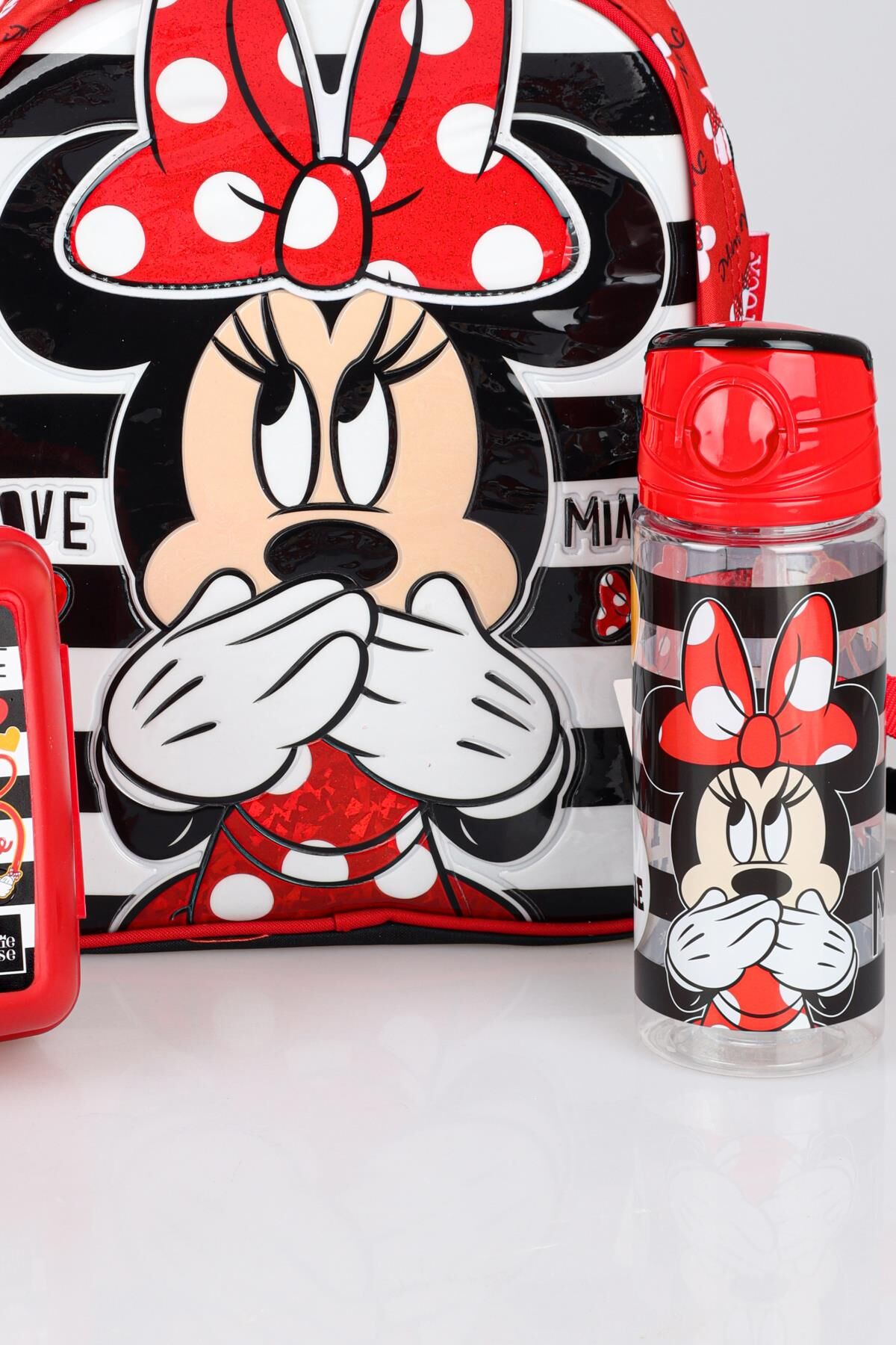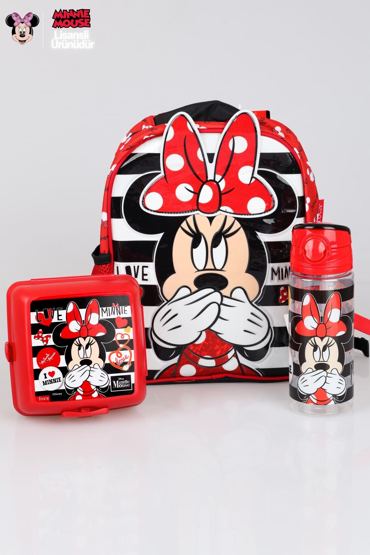DEKOMUS MINNIE MOUE seven miniklerimizin yanında! MINNIE MOUE seven çocuklar için özel olarak hazırlanan bu seti çok sevecekler! Matara: TRITAN Ürünün kapasitesi 500 ml'dir. Açılır kapanır kapak sayesinde dökülme problemi olmadan rahatlıkla kullanılabilir. Okul çantası: Anaokul MINNIE MOUE olarak sattığımız tüm ürünler orjinal ve lisanslıdır.Sağlığa zararlı kimyasal madde kullanılmamıştır.