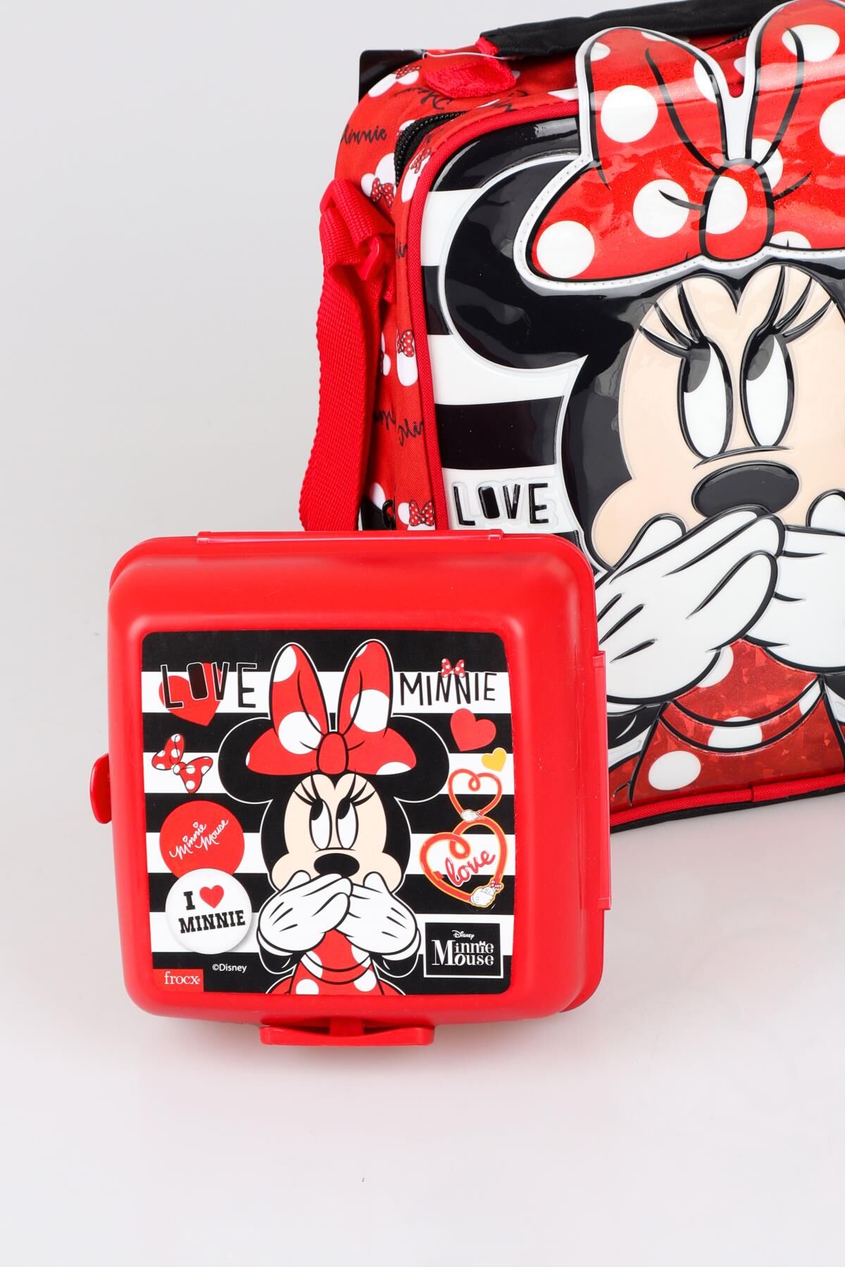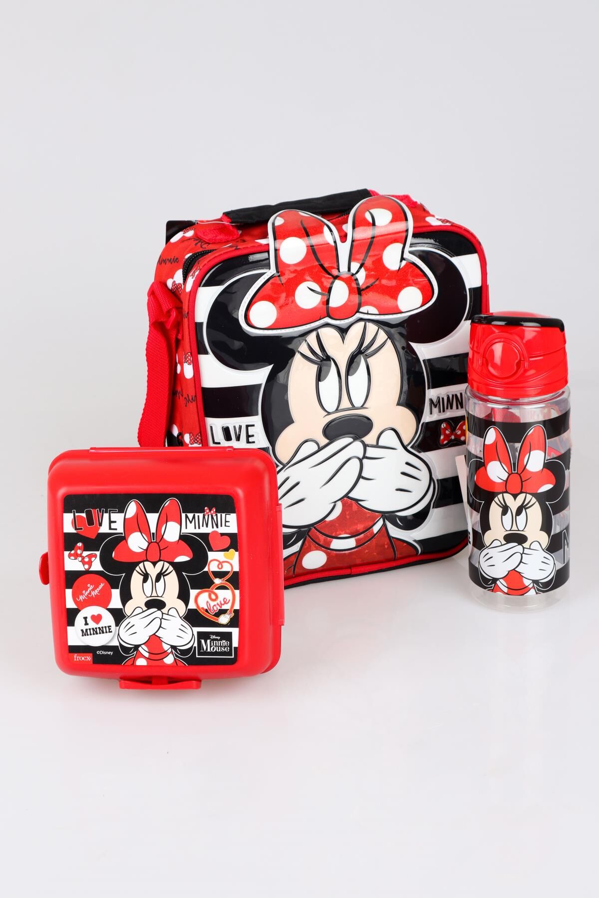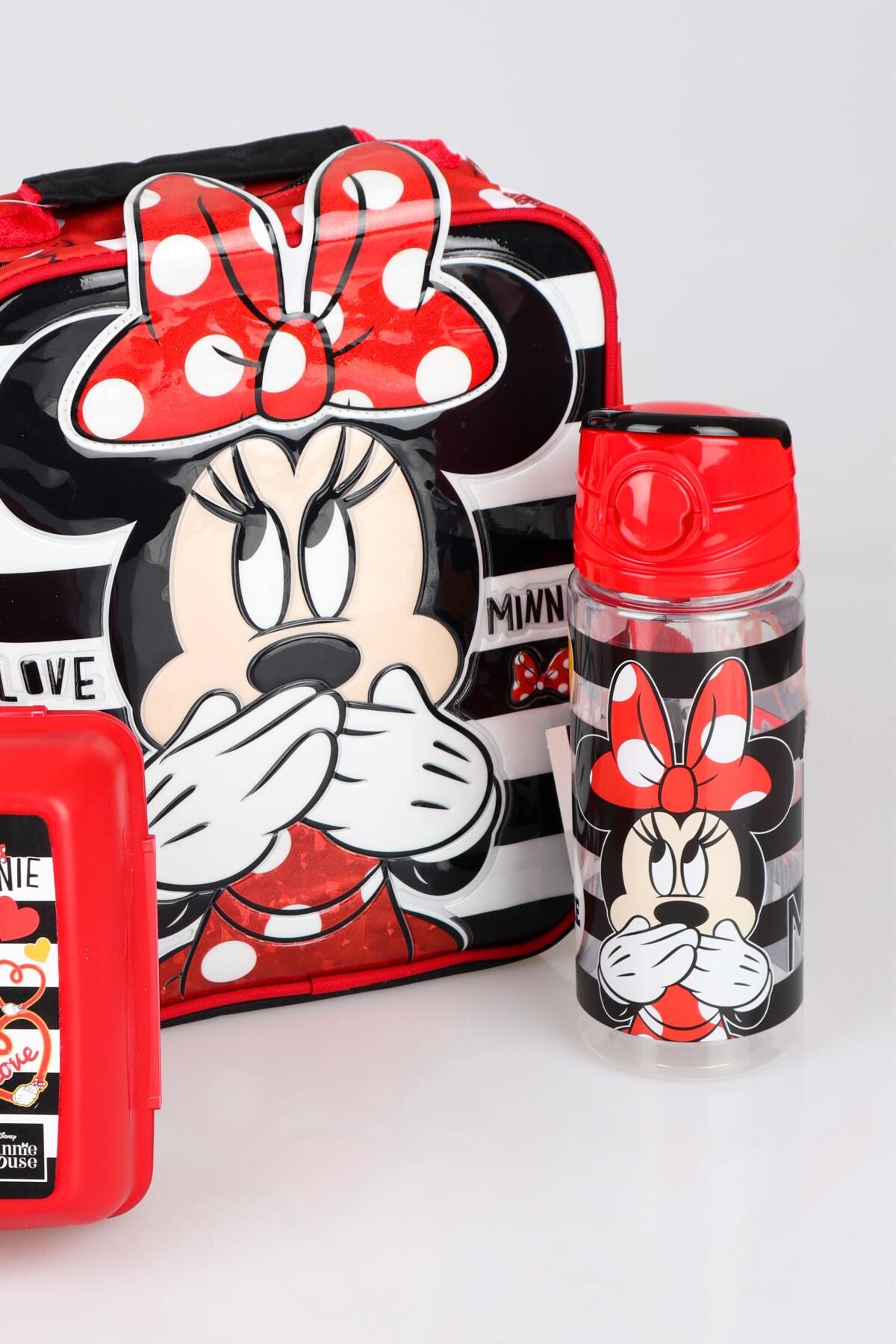 YENİ SEZON LİSANSLI MINNIE MOUSE BESLENME ÇANTASI,BESLENME KABI VE TRITAN MATARA 500 ML BESLENME SETİ